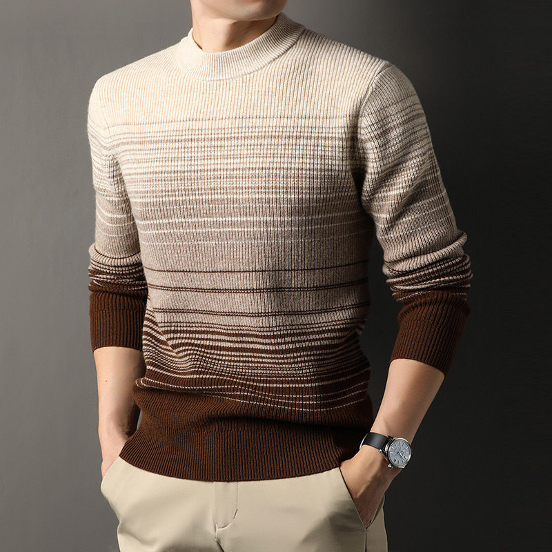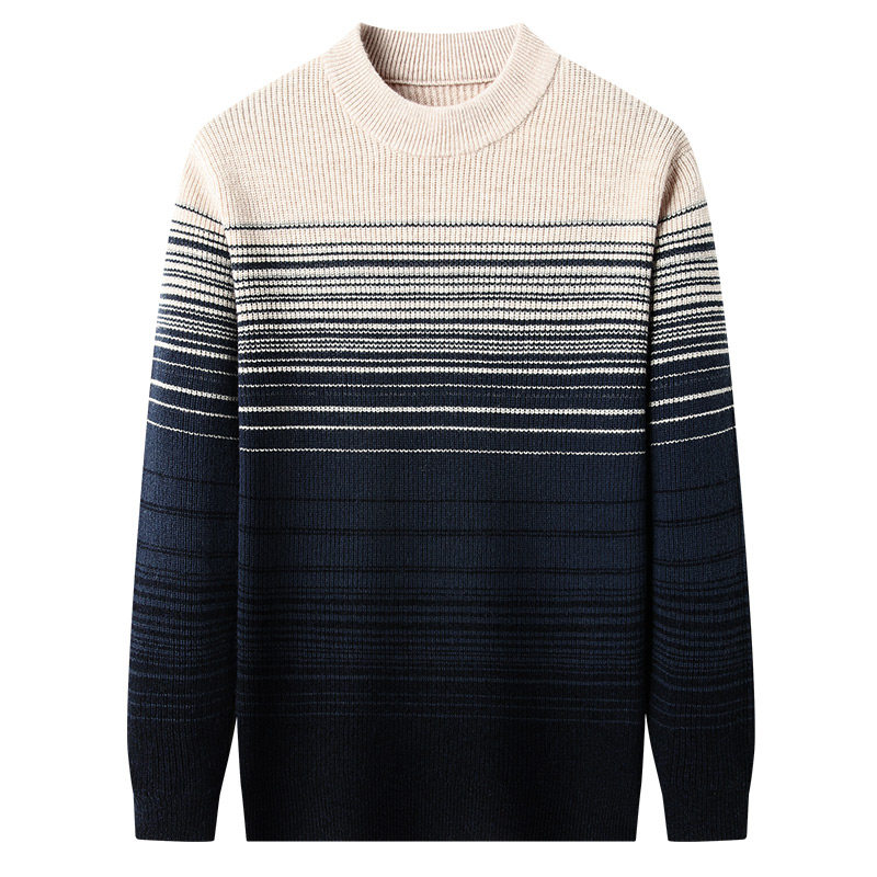 恒源祥男士毛衣针织衫半高领条纹打底衫中年爸爸装纯羊毛衫秋冬装
