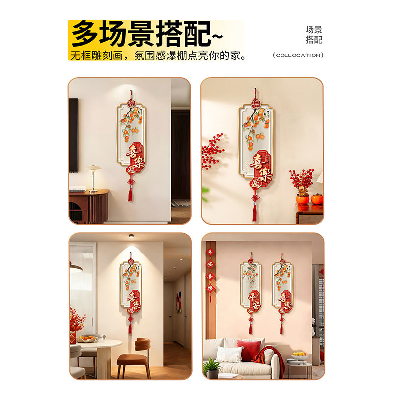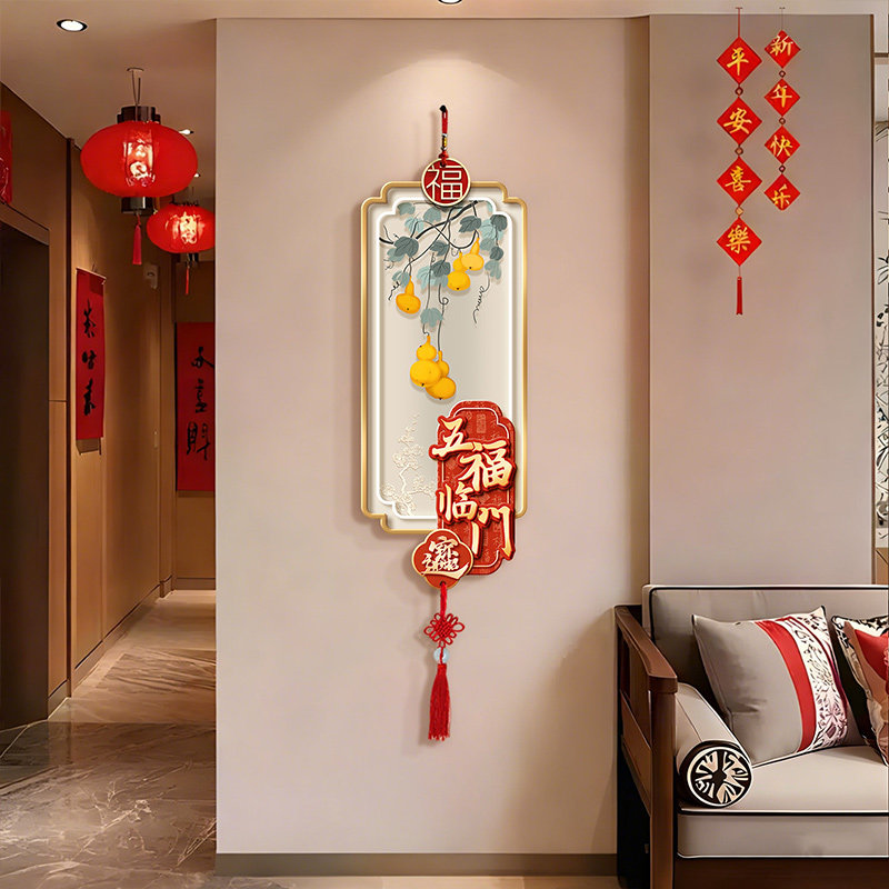 过年装饰入户进门挂饰新年福字喜庆壁饰带中国结电视背景墙装饰画