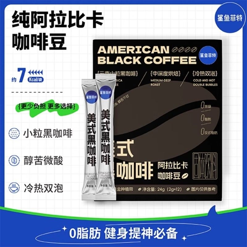 鲨鱼菲特黑咖啡0脂肪0蔗糖速溶云南小粒美式咖啡粉提神醒脑学生