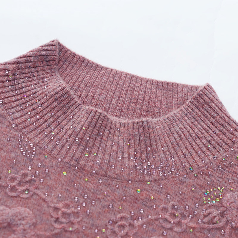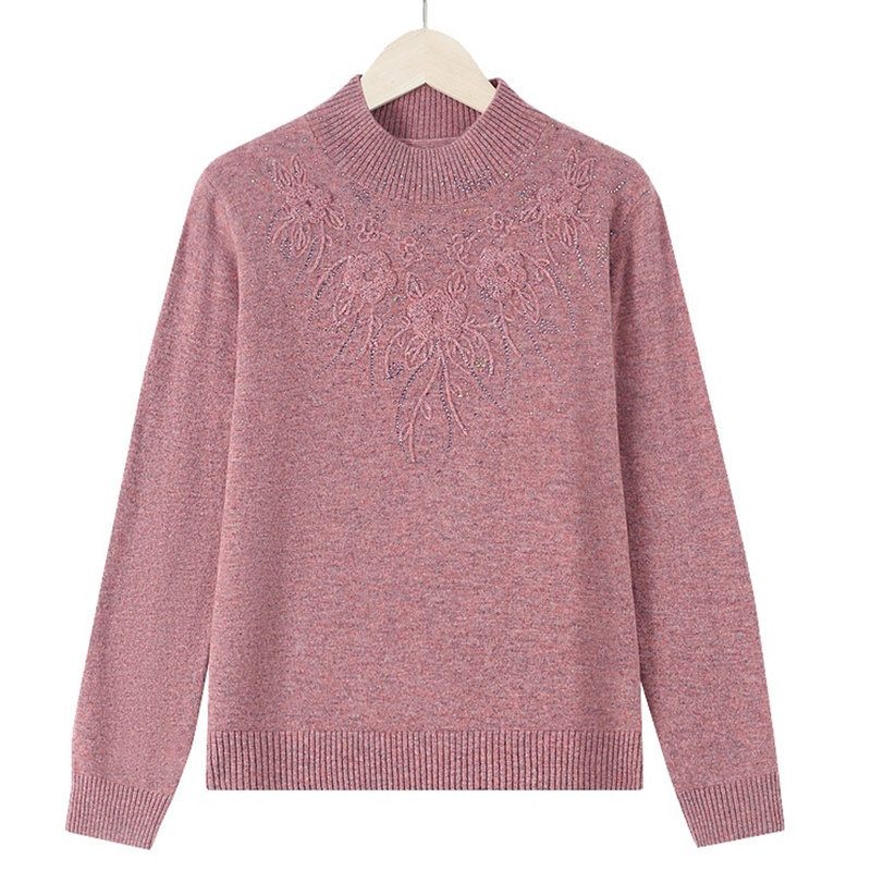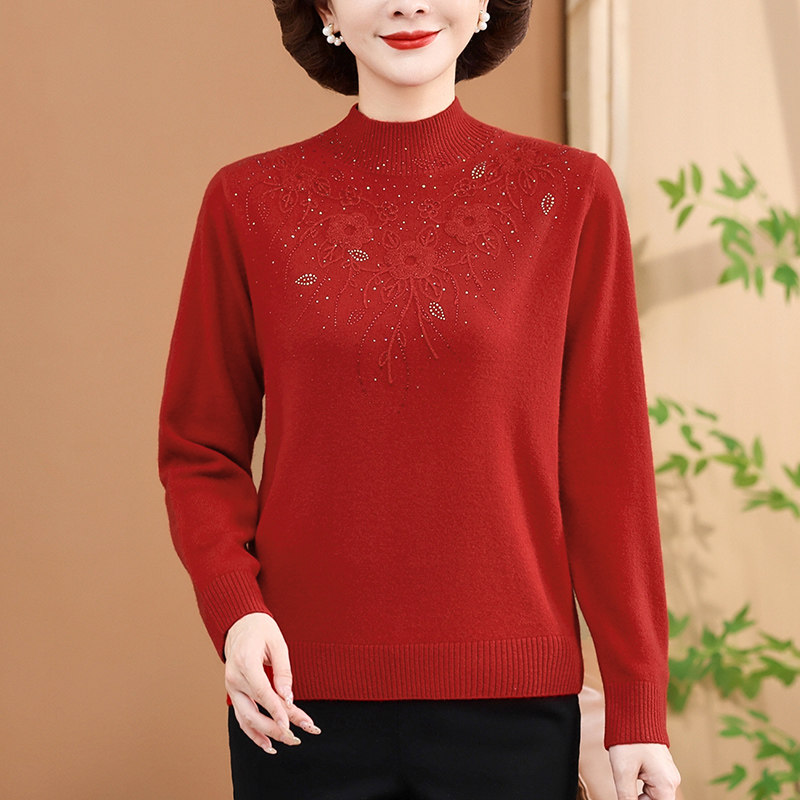 恒源祥中年妇女半高领针织毛衣洋气妈妈春装休闲百搭100纯羊毛衫