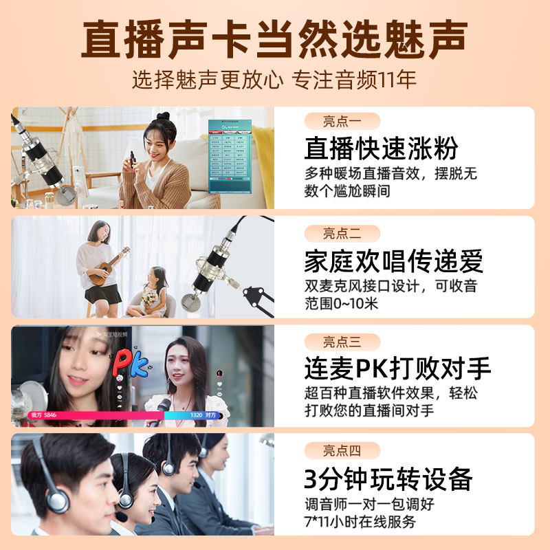 魅声 t8直播设备全套声卡套装手机电脑专用k歌录音专业唱歌麦克风