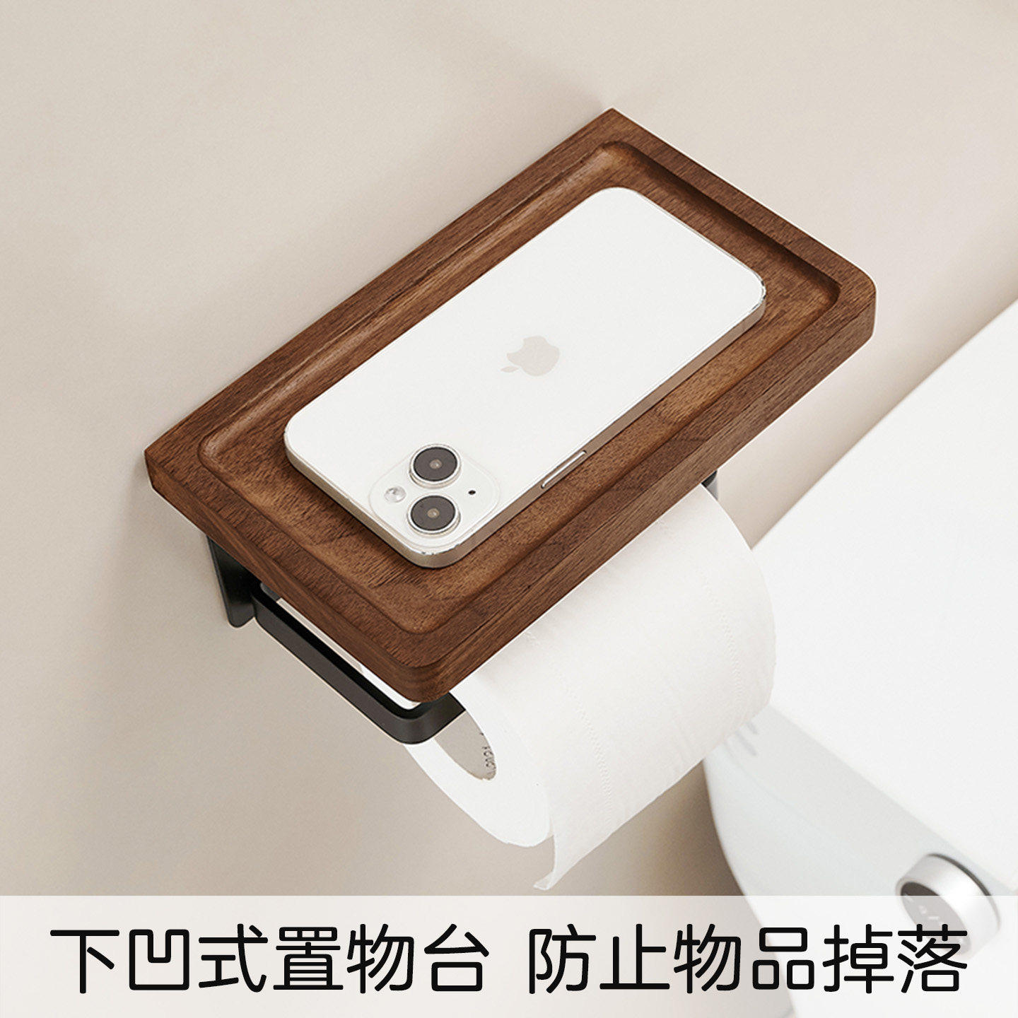 胡桃木卫生间厕纸盒厕所浴室洗手台纸巾盒壁挂置物架卷纸架纸巾架