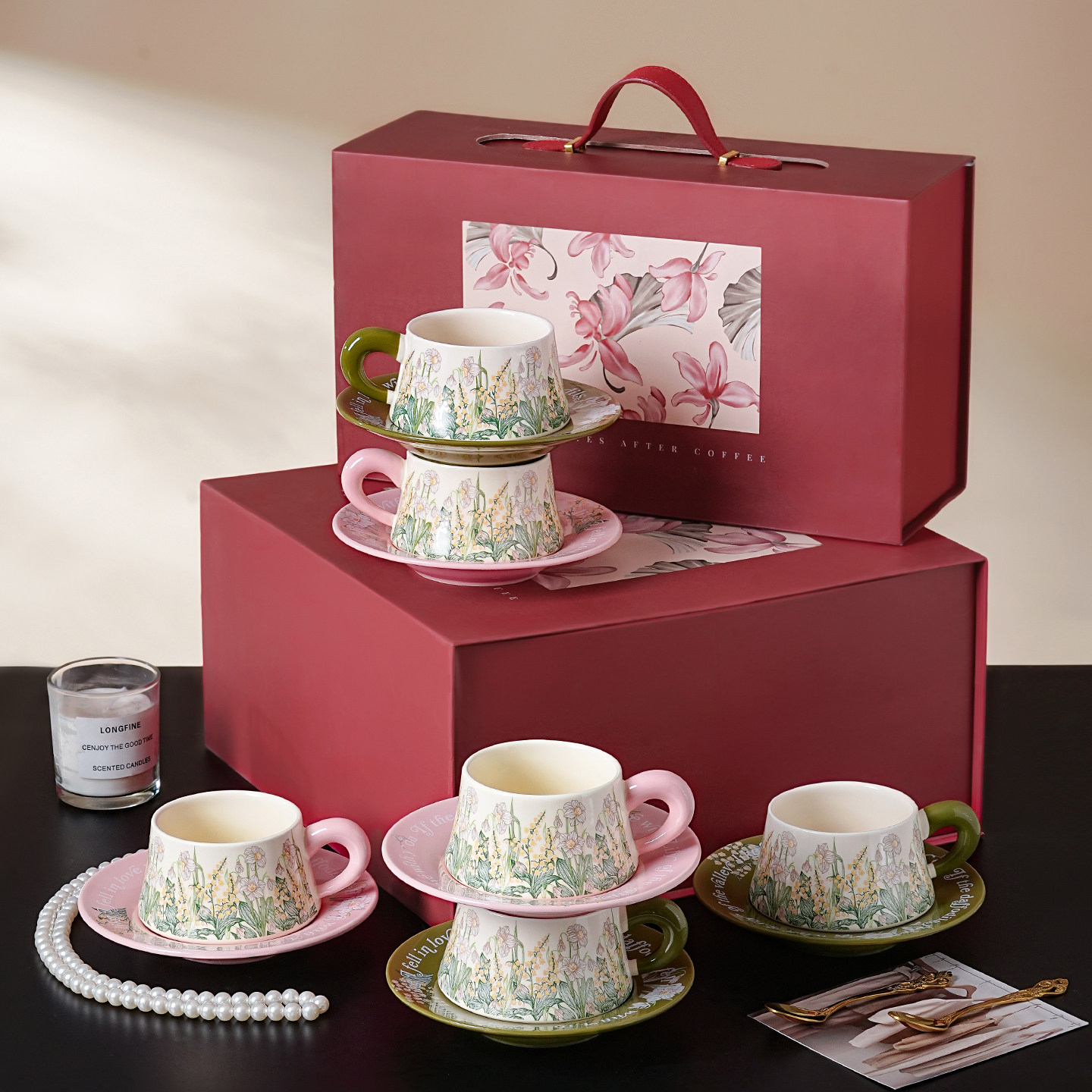 特别好看的咖啡杯碟套装高轻奢高颜值新婚结婚送姐姐陶瓷杯子礼物