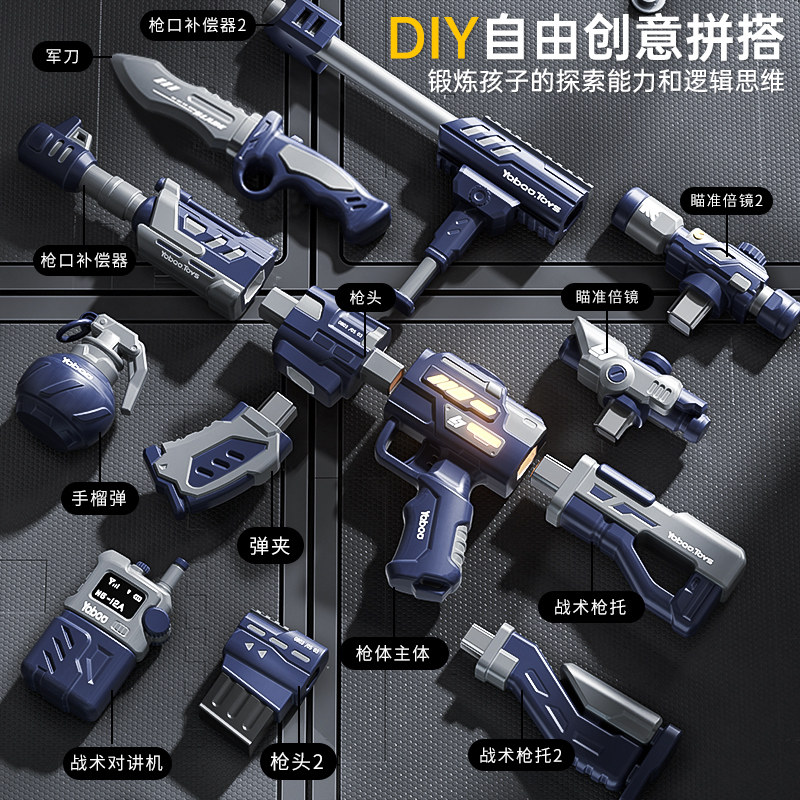 儿童电动声光玩具枪组合拼装磁力枪36岁男孩生日礼物男童益智组装