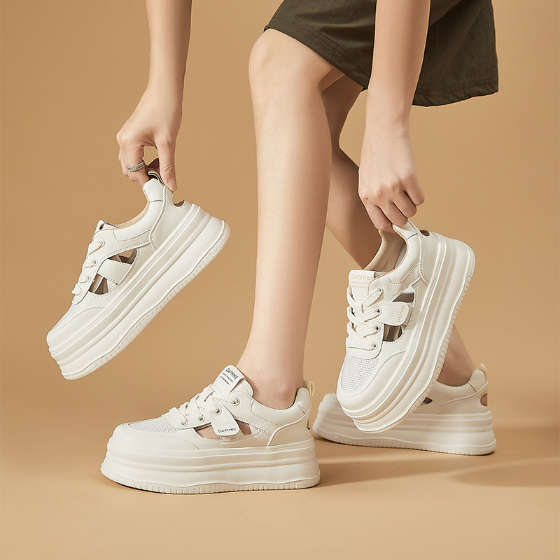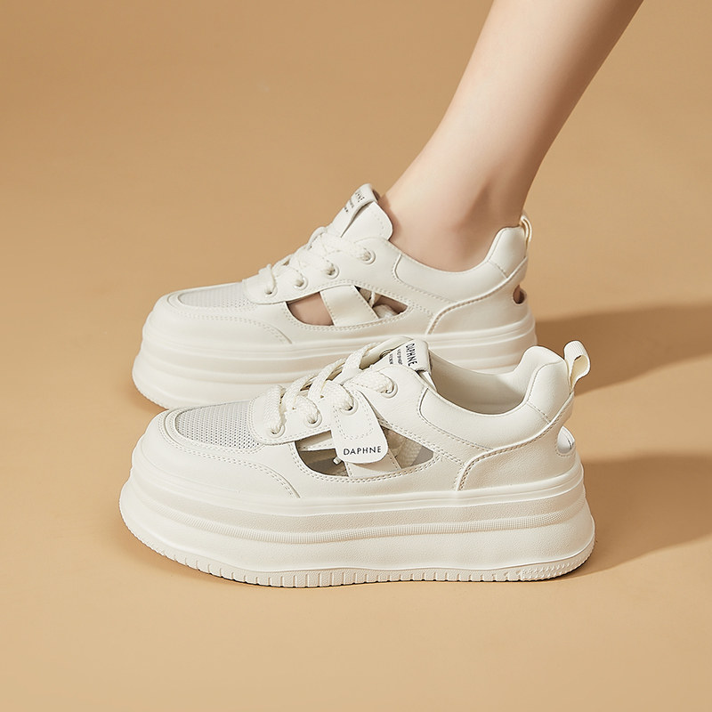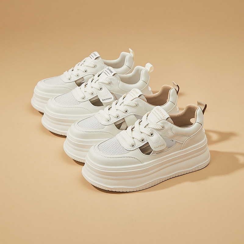 Daphne/达芙妮厚底镂空洞洞板鞋女松糕鞋网红爆款增高百搭小白鞋