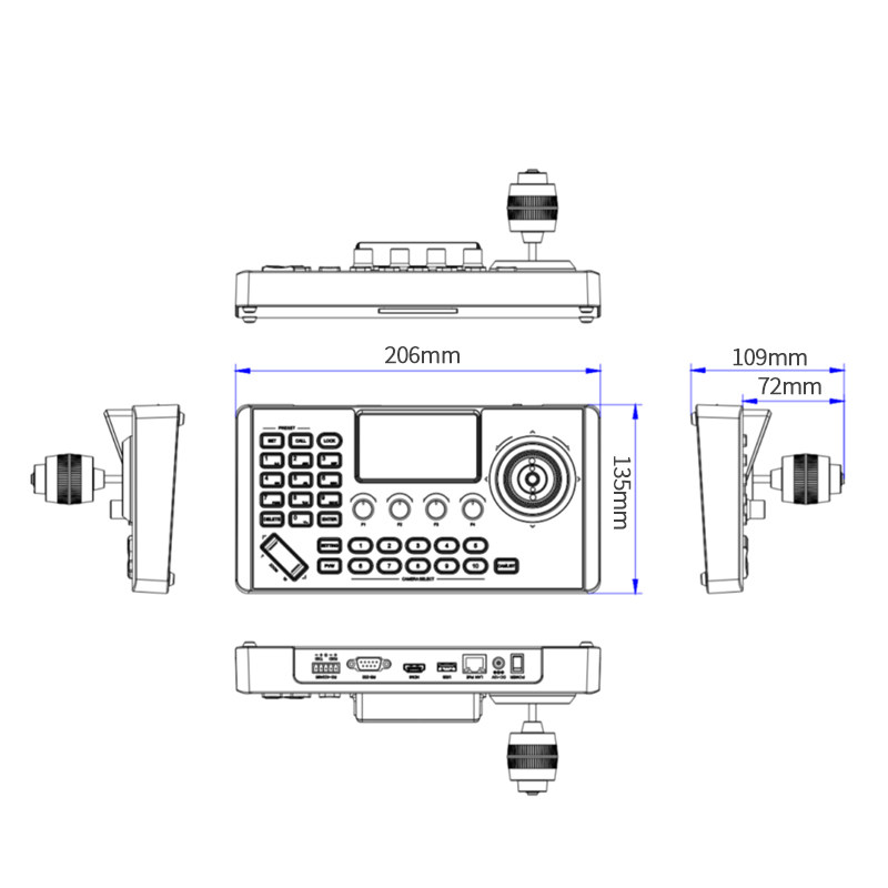 生华视通SH-KBD510N视频会议四维多功能PTZ网络控制键盘内置3英寸屏HDMI输出画面实时预览支持VISCA/PELCO等