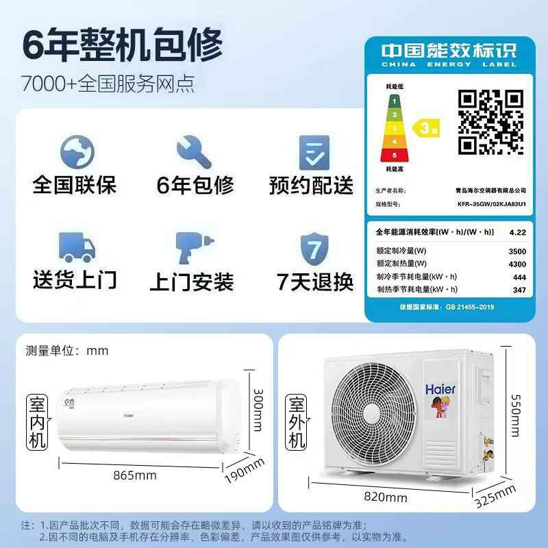 海尔小红花空调新一级能效1.5匹变频冷暖家用劲爽挂机35LCA