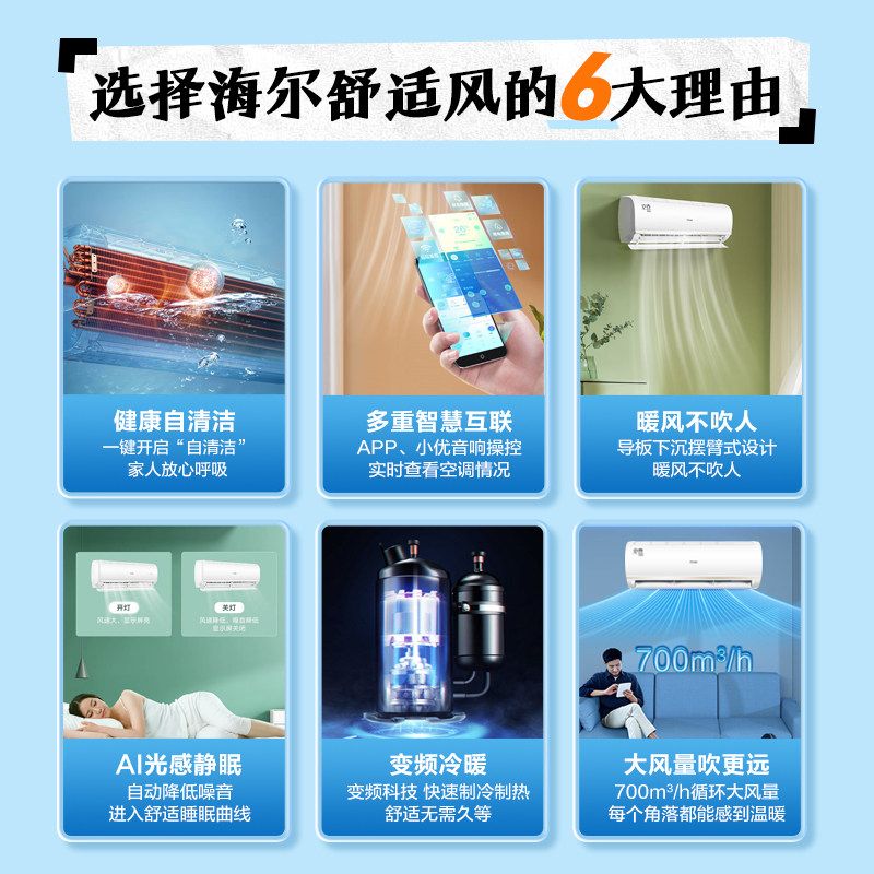 海尔1.5P空调三级智能WIFI节能舒适家用挂机变频睡眠空调官方正品