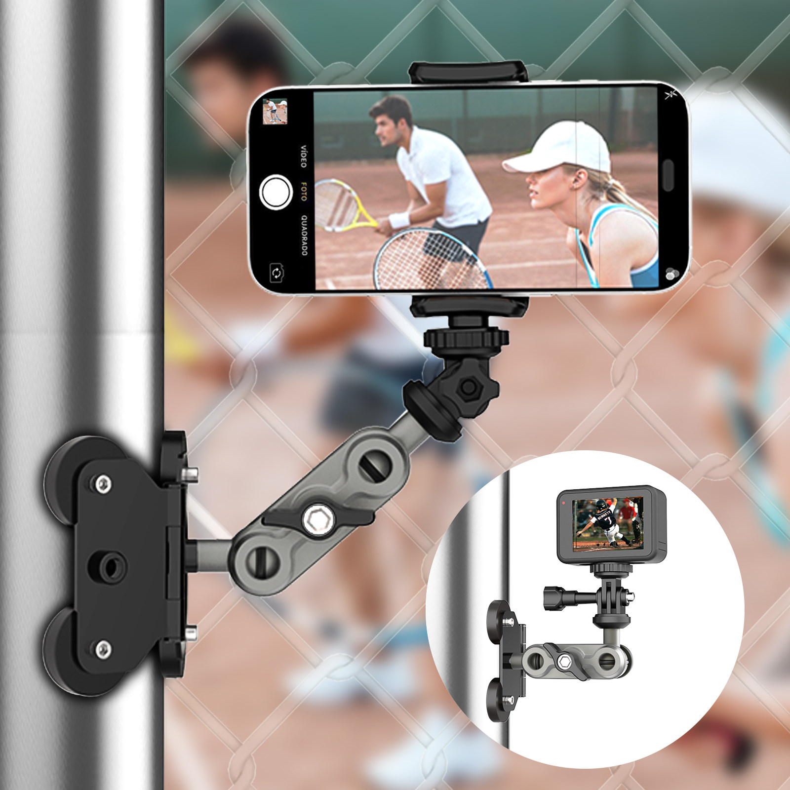 出口欧美原单网球杆磁吸手机支架运动相机羽毛球棒球vlog录像