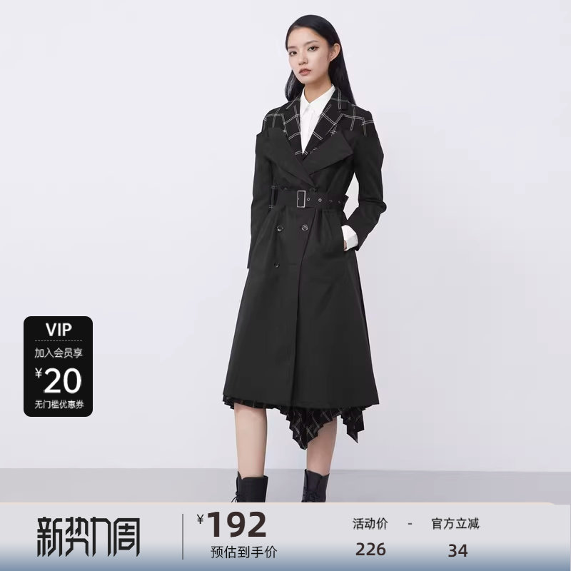 PRICH时尚双排扣风衣春季职场通勤收腰显瘦外套女