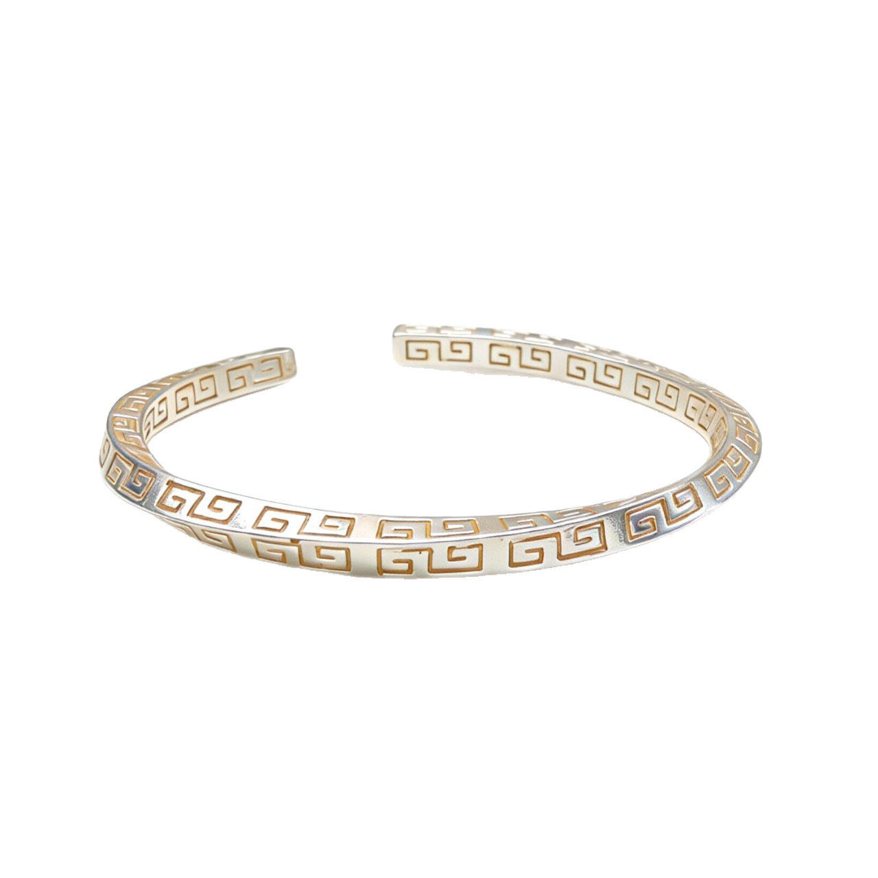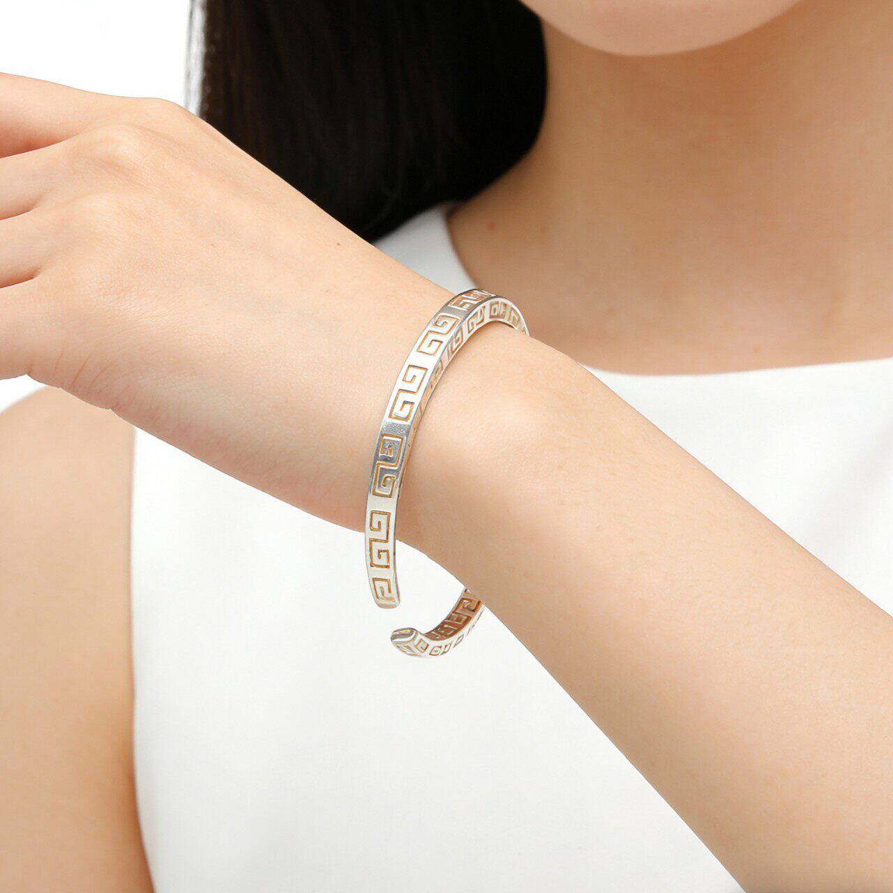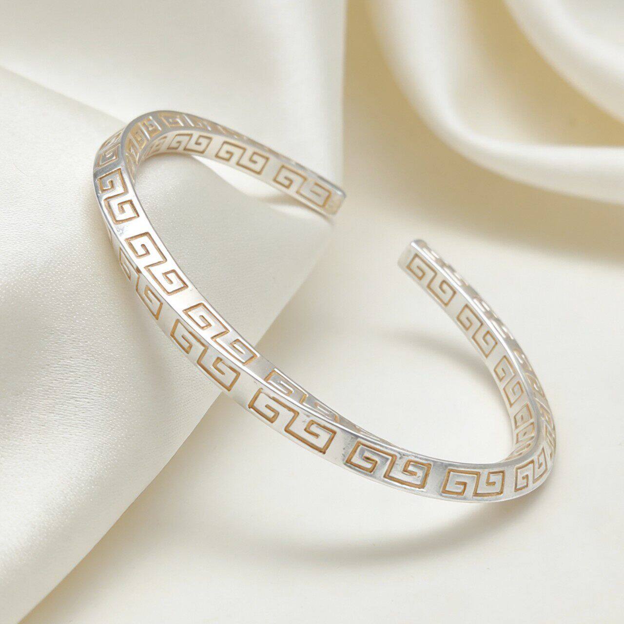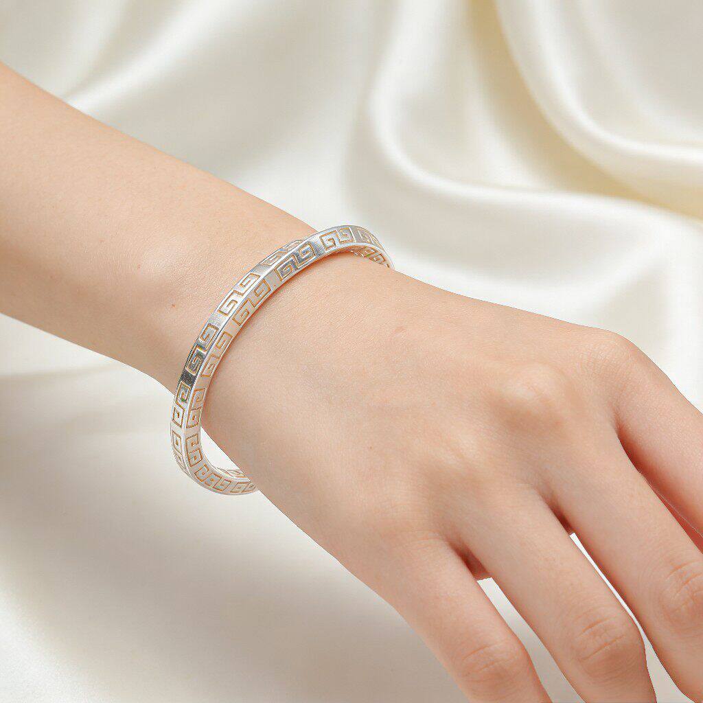 【幂琳】轻奢风几何纹开口手镯女式银色镂空设计时尚简约手链女