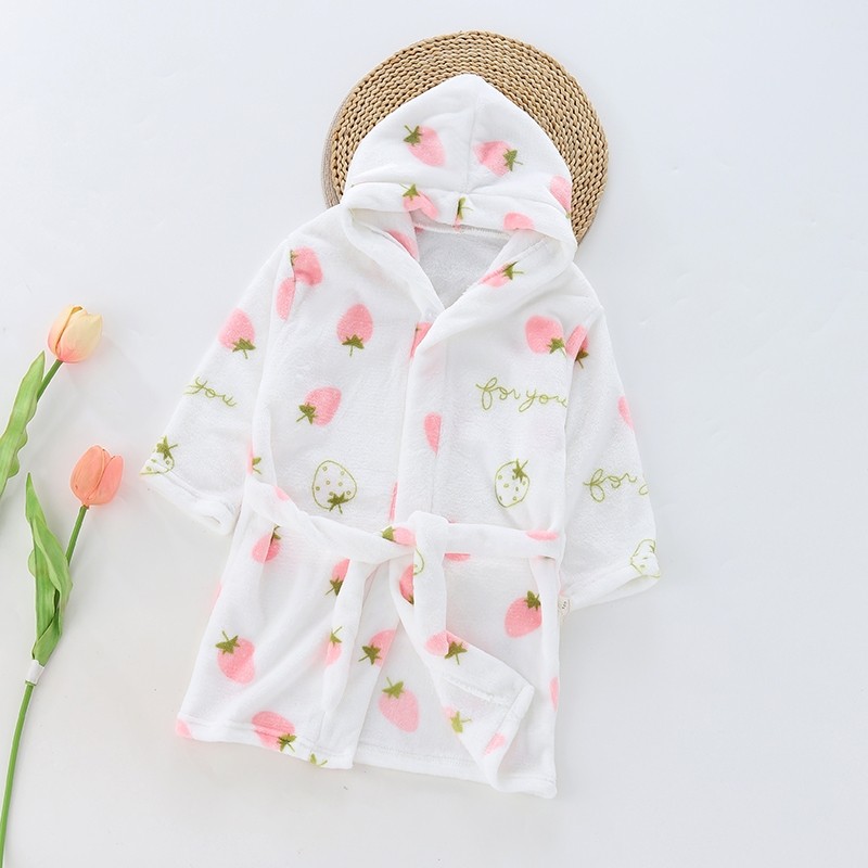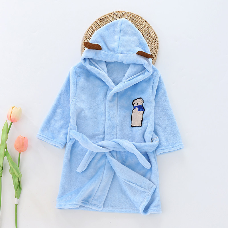 秋冬新款儿童浴袍中小童法兰绒睡袍男孩女孩法兰绒家居浴衣