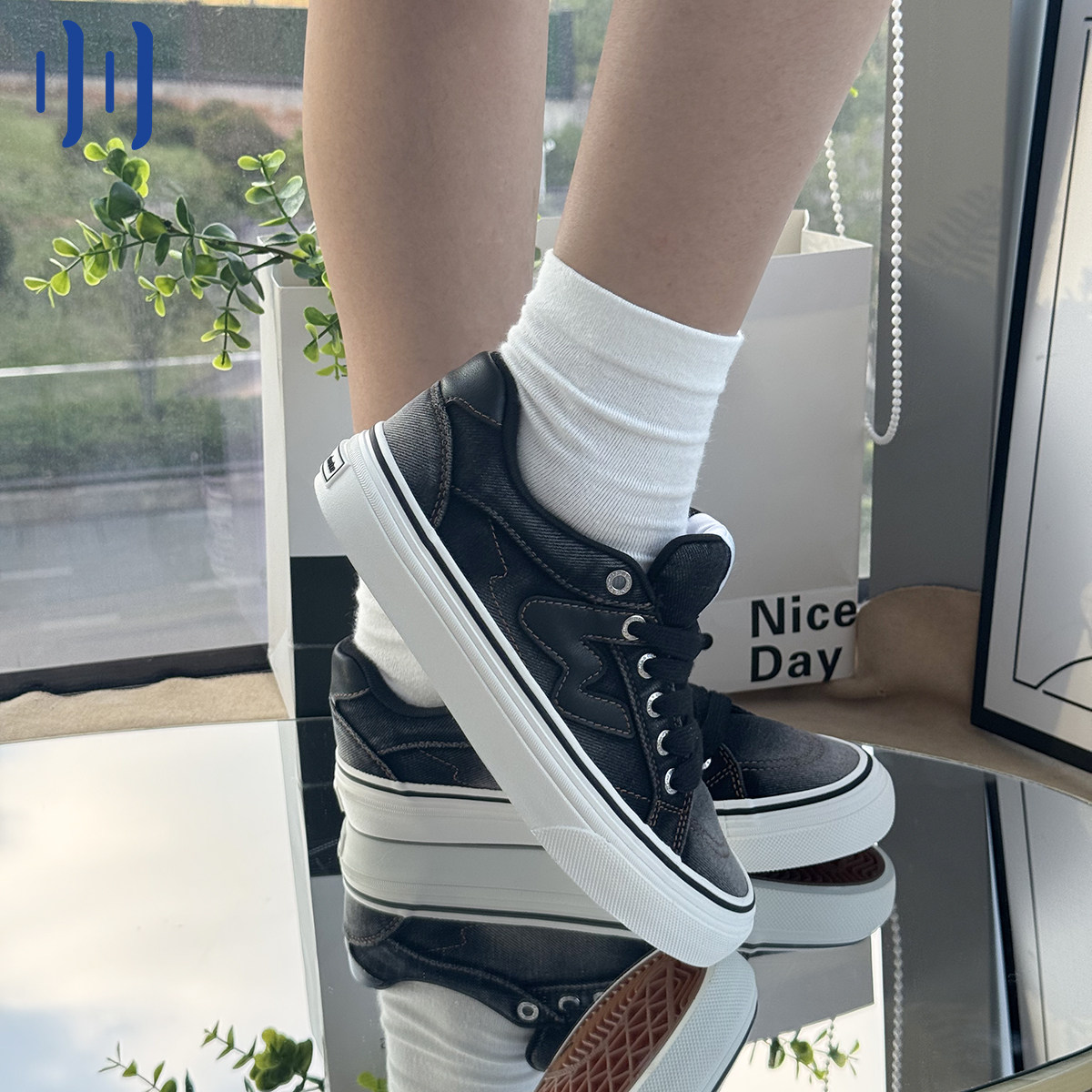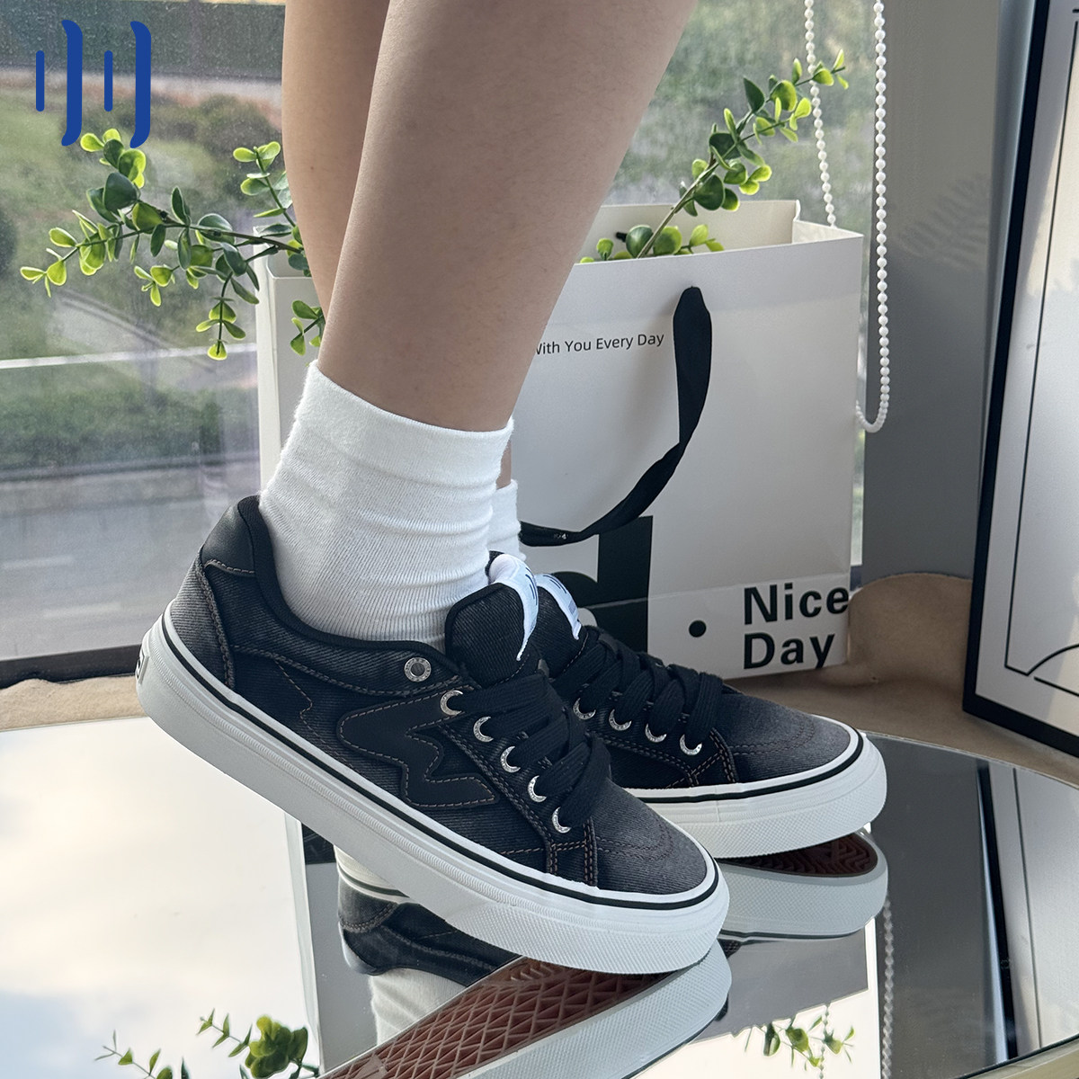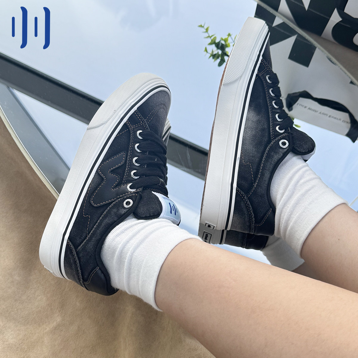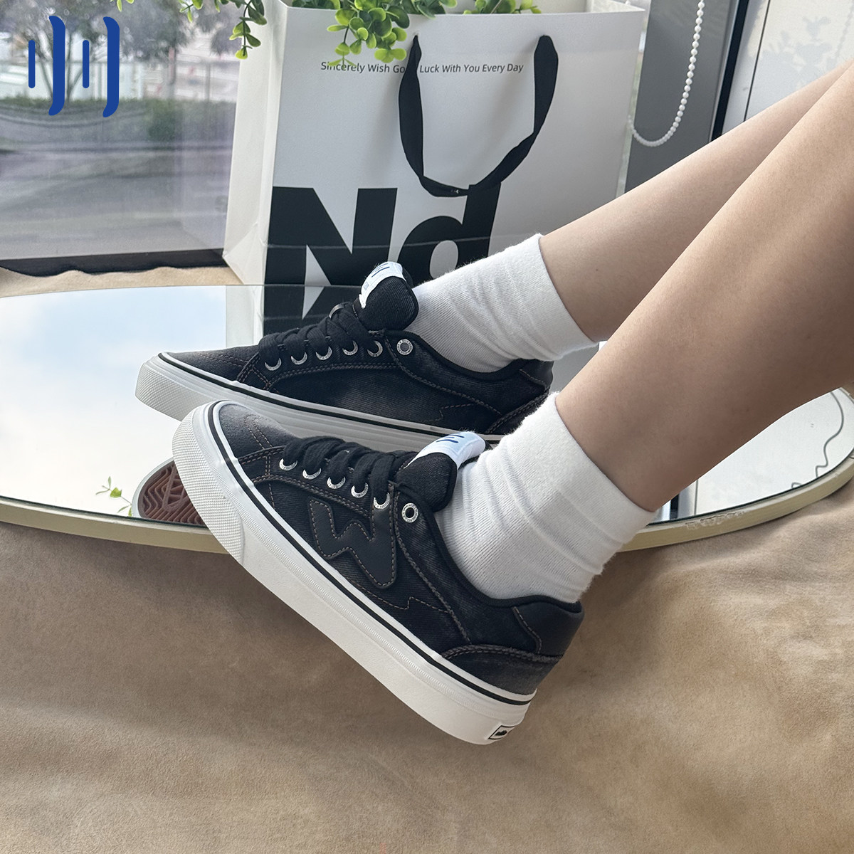 顽刻官方水洗黑色秋季校园风W系列休闲低帮男女国潮滑板鞋
