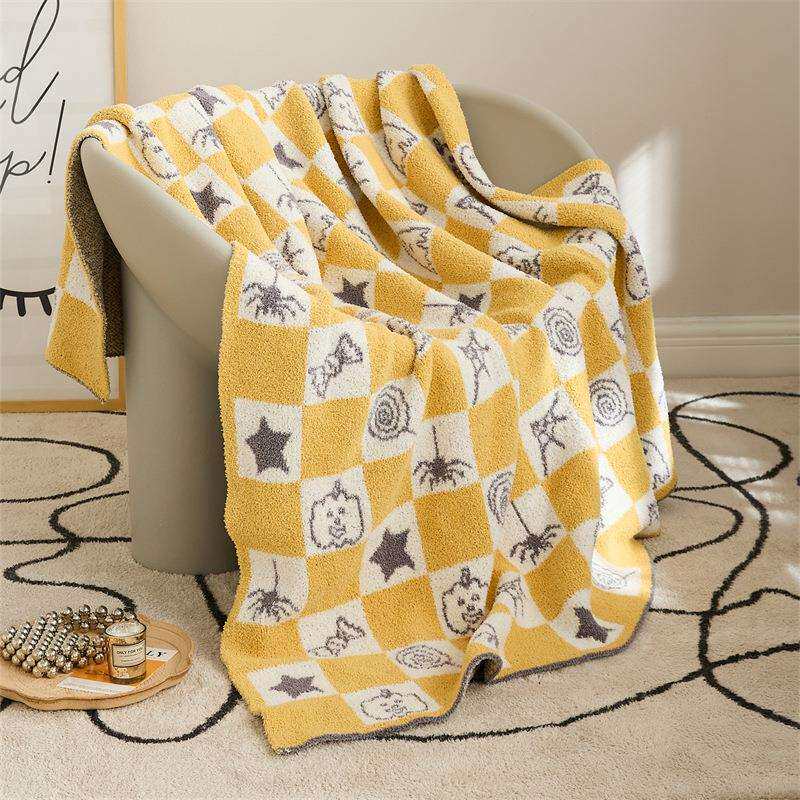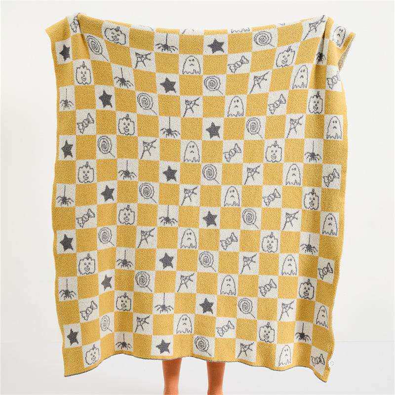 瑞景纺织厂家万圣节恶魔南瓜毯子A类半边绒针织线毯沙发毯