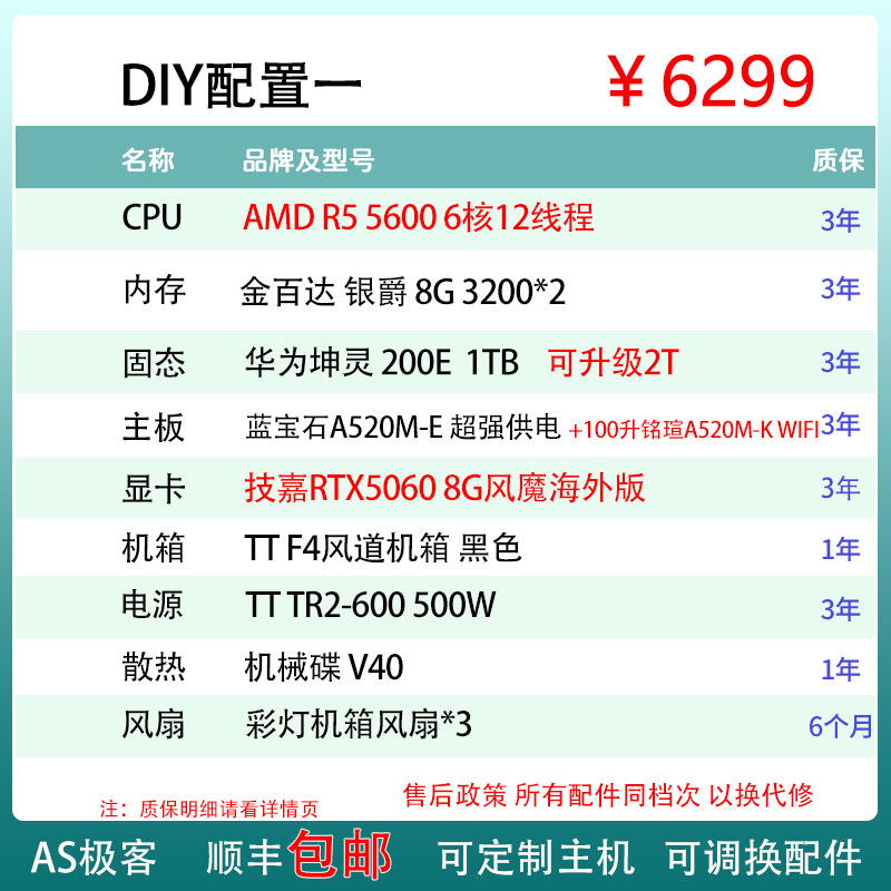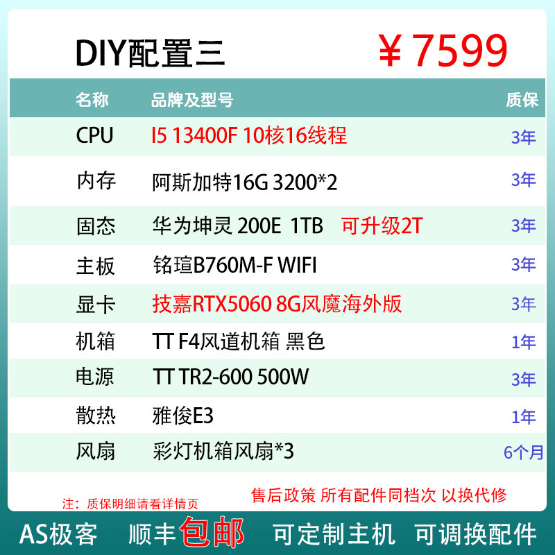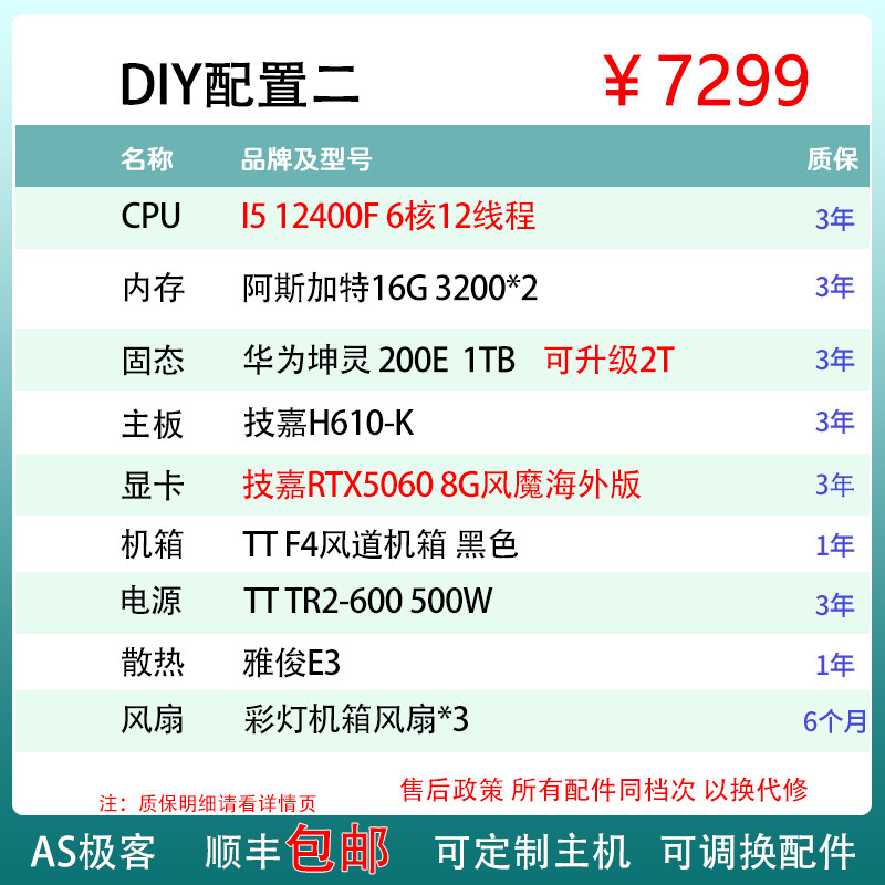 RTX5060 8G七彩虹-技嘉-影驰-微星-华硕电脑主机整机AS极客