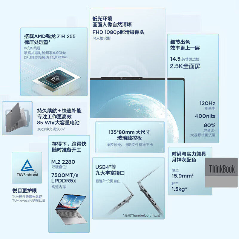 联想ThinkBook14+ 2025款锐龙R7 14.5英寸轻薄办公商务笔记本电脑ThinkPad