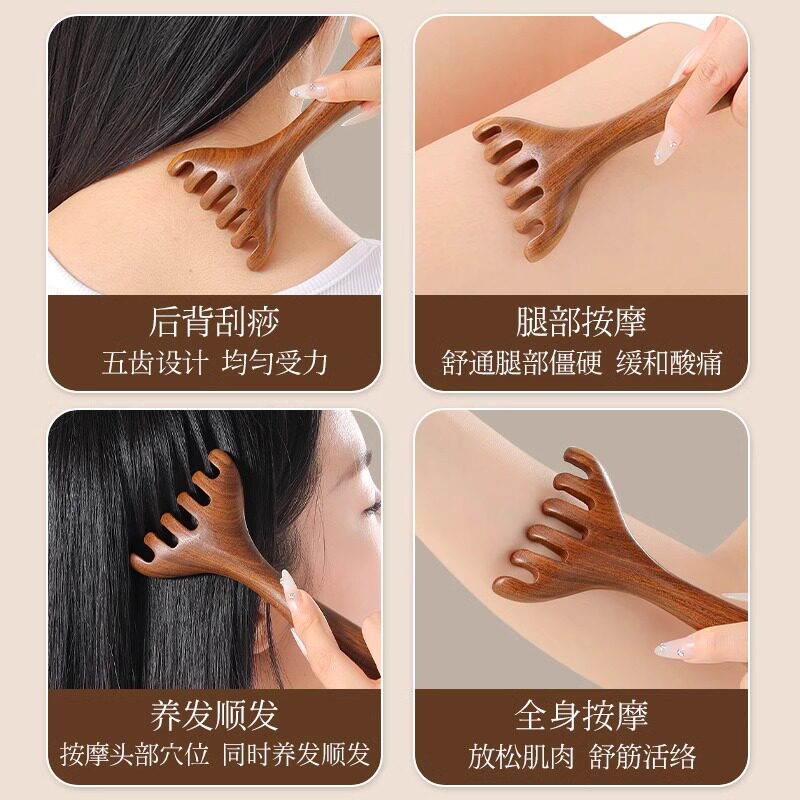 头部檀木按摩爪头皮经络梳鹿角梳抓头挠头刮痧养生拨筋棒头疗木梳