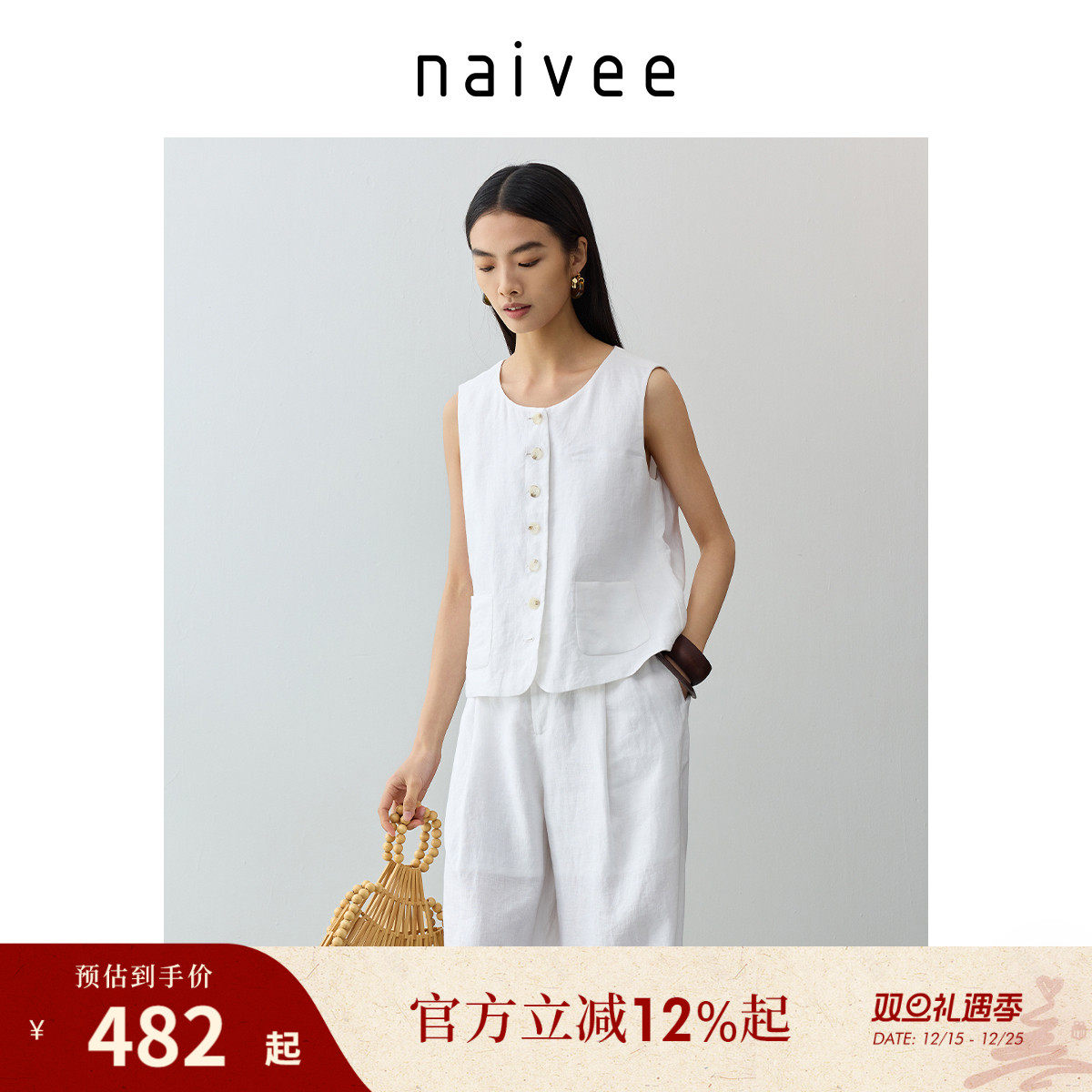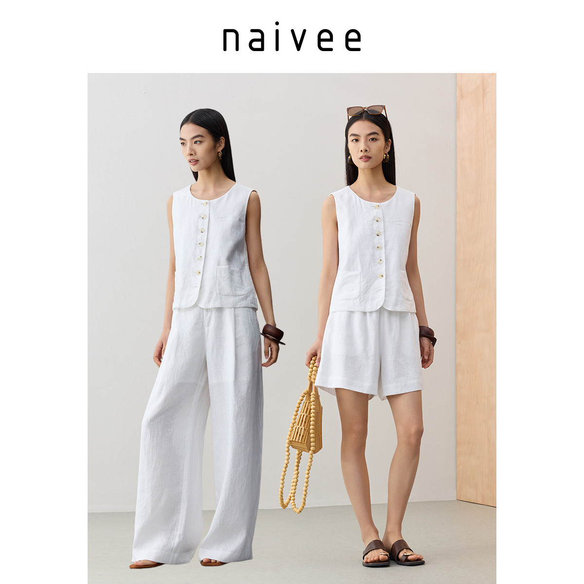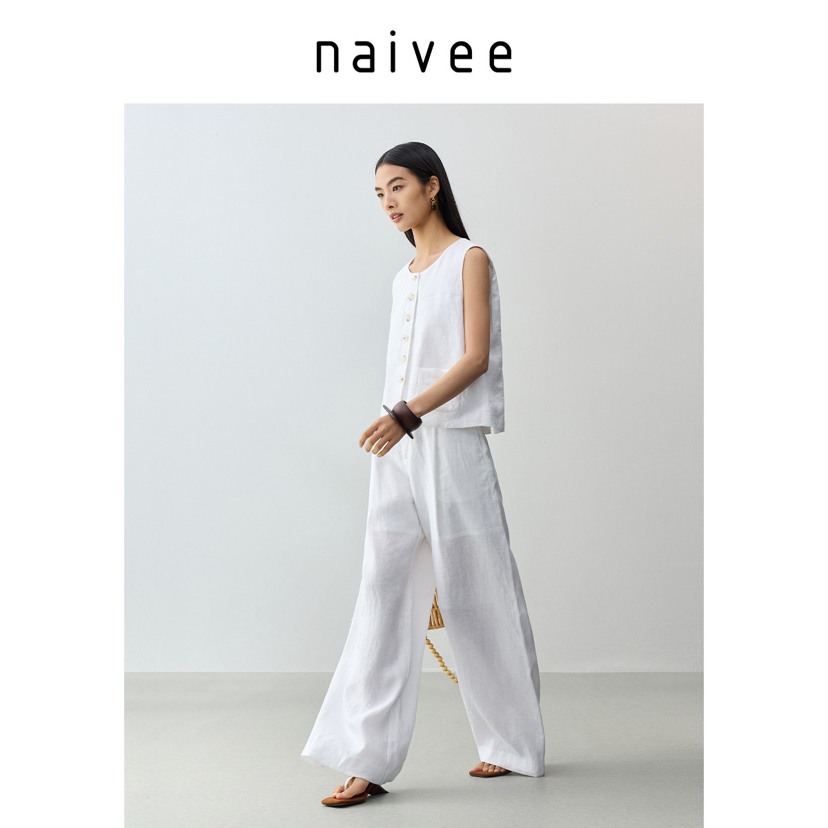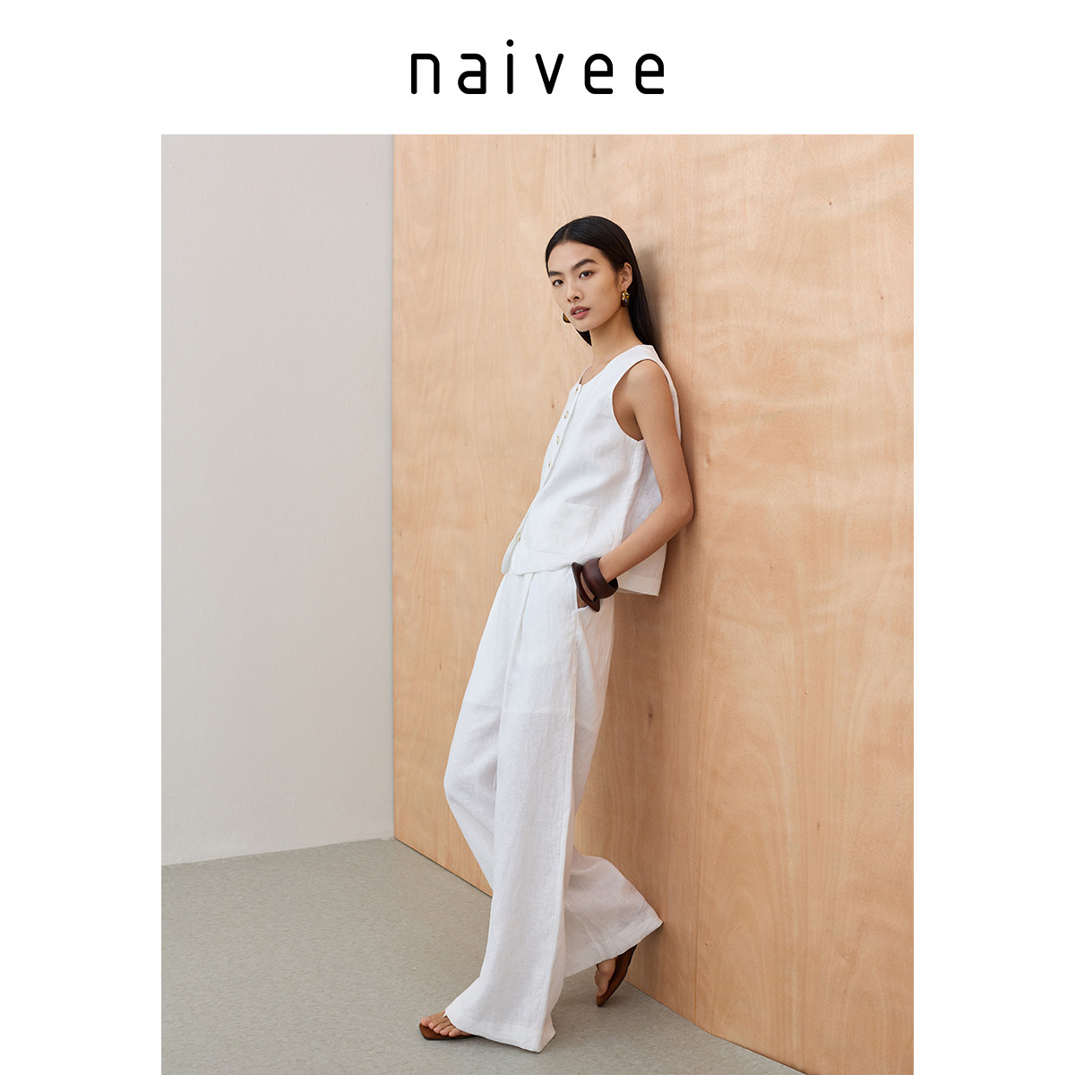 【100%水洗亚麻】naivee纳薇25夏新款老钱风马甲背心女休闲裤