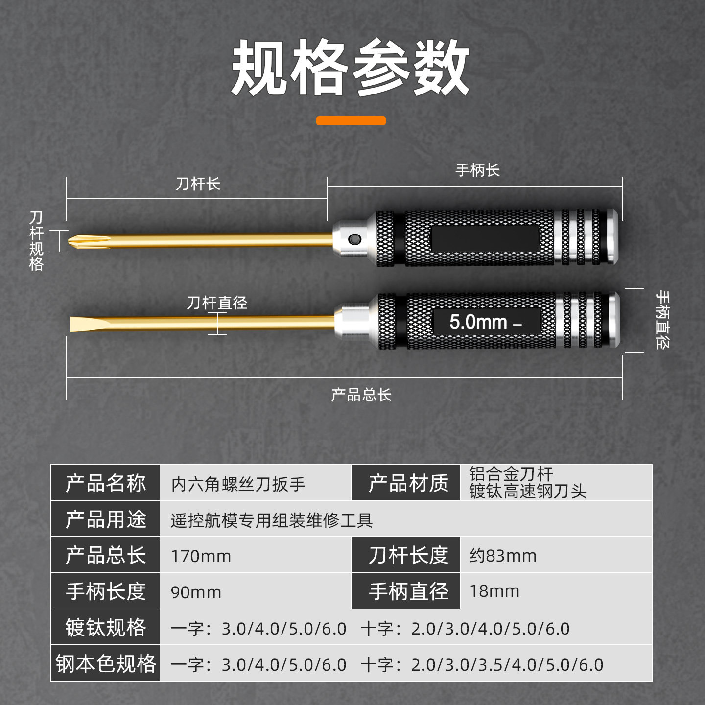 钛金手柄套装十字/一字螺丝刀航模模型车模维修工具2.0/3/4/5/6mm