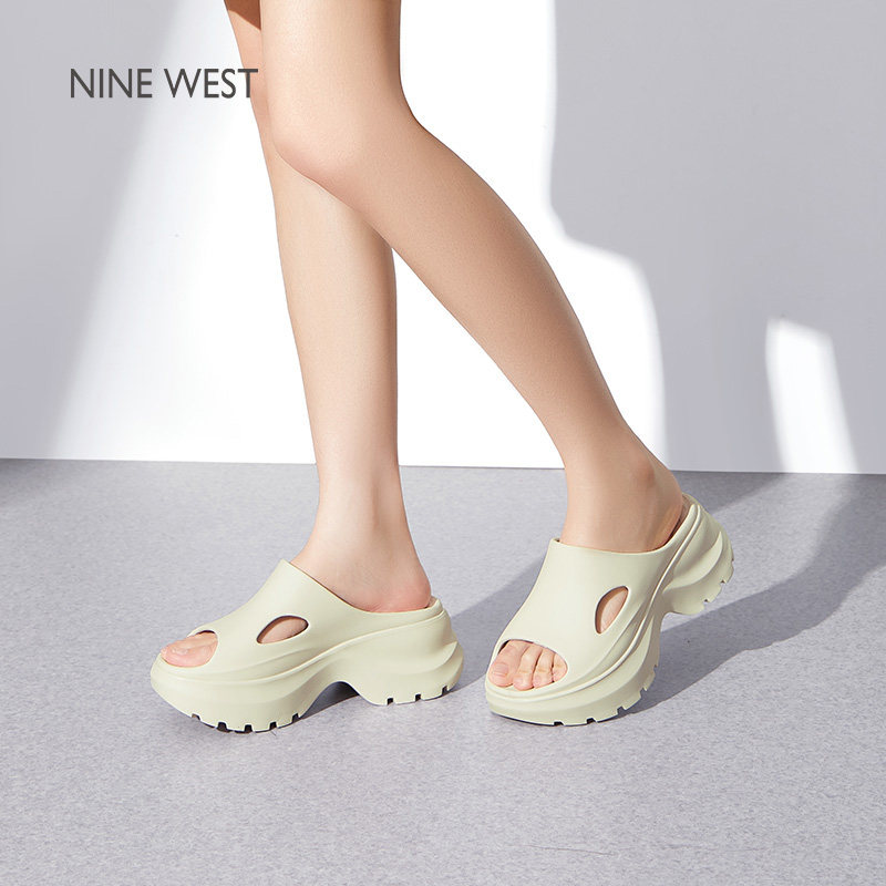 Nine West/玖熙厚底拖鞋女外穿增高坡跟一字拖凉拖鞋踩屎感