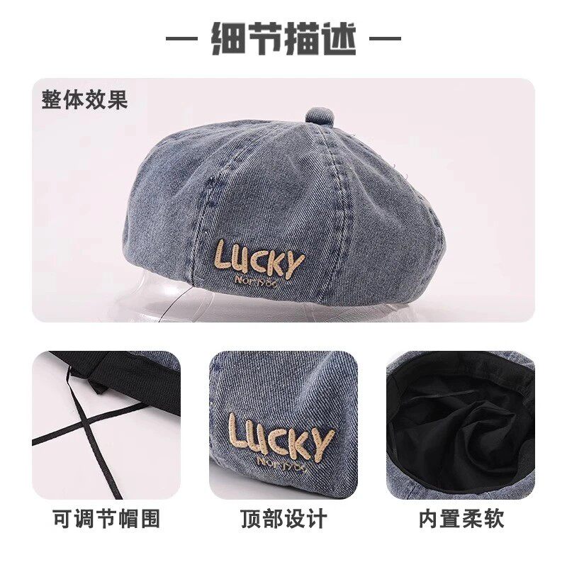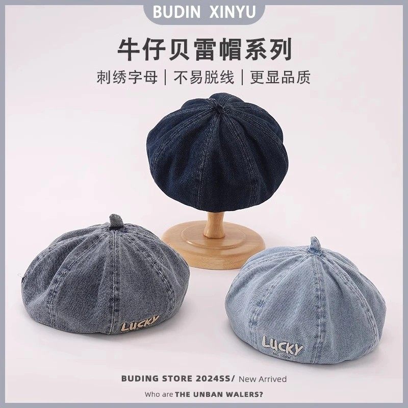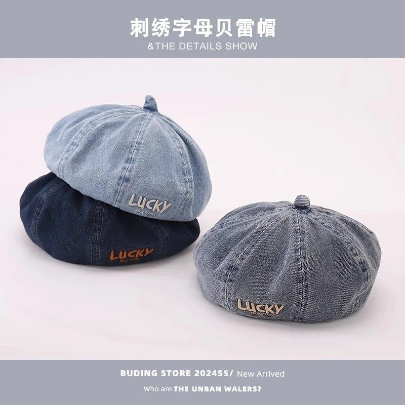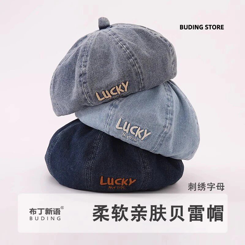 儿童八角帽子春秋薄款牛仔字母洋气时尚鸭舌贝雷帽男女宝宝遮阳帽