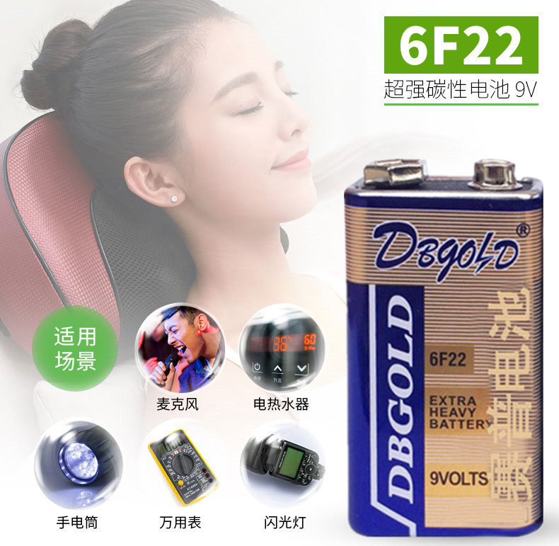 9V电池方块6F22万用表烟雾报警器话筒麦克风体温枪遥控器碳性叠层