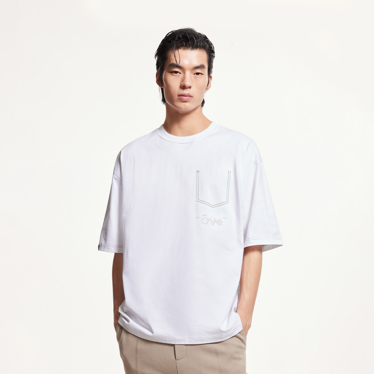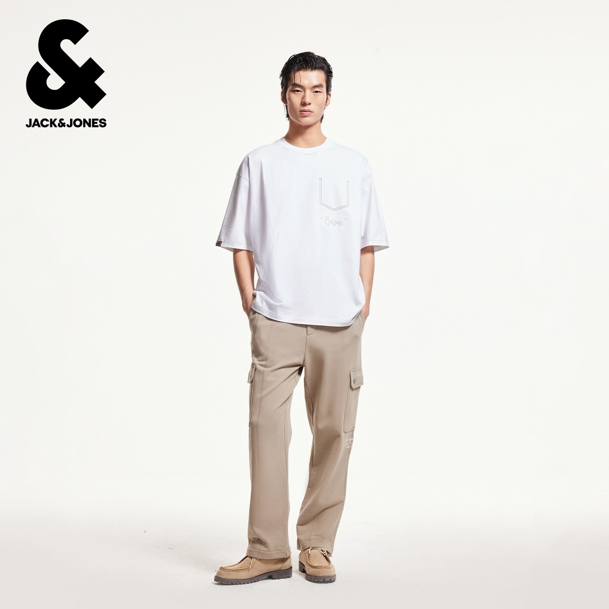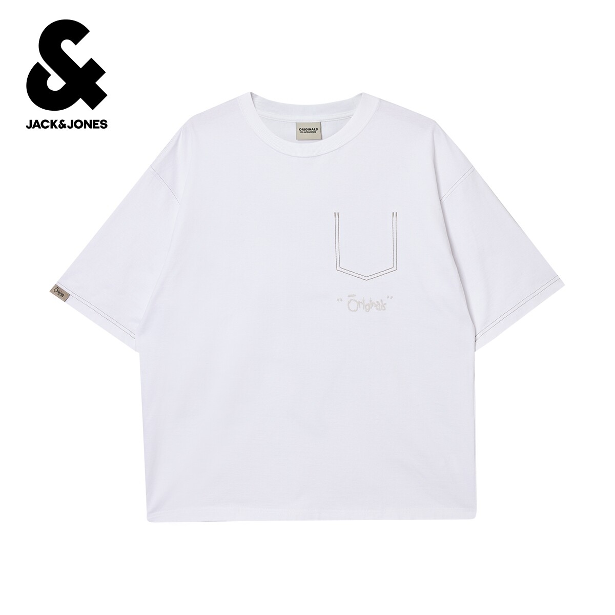 杰克琼斯夏季潮流宽松版型胸前字母刺绣男士短袖男款T恤上衣男装