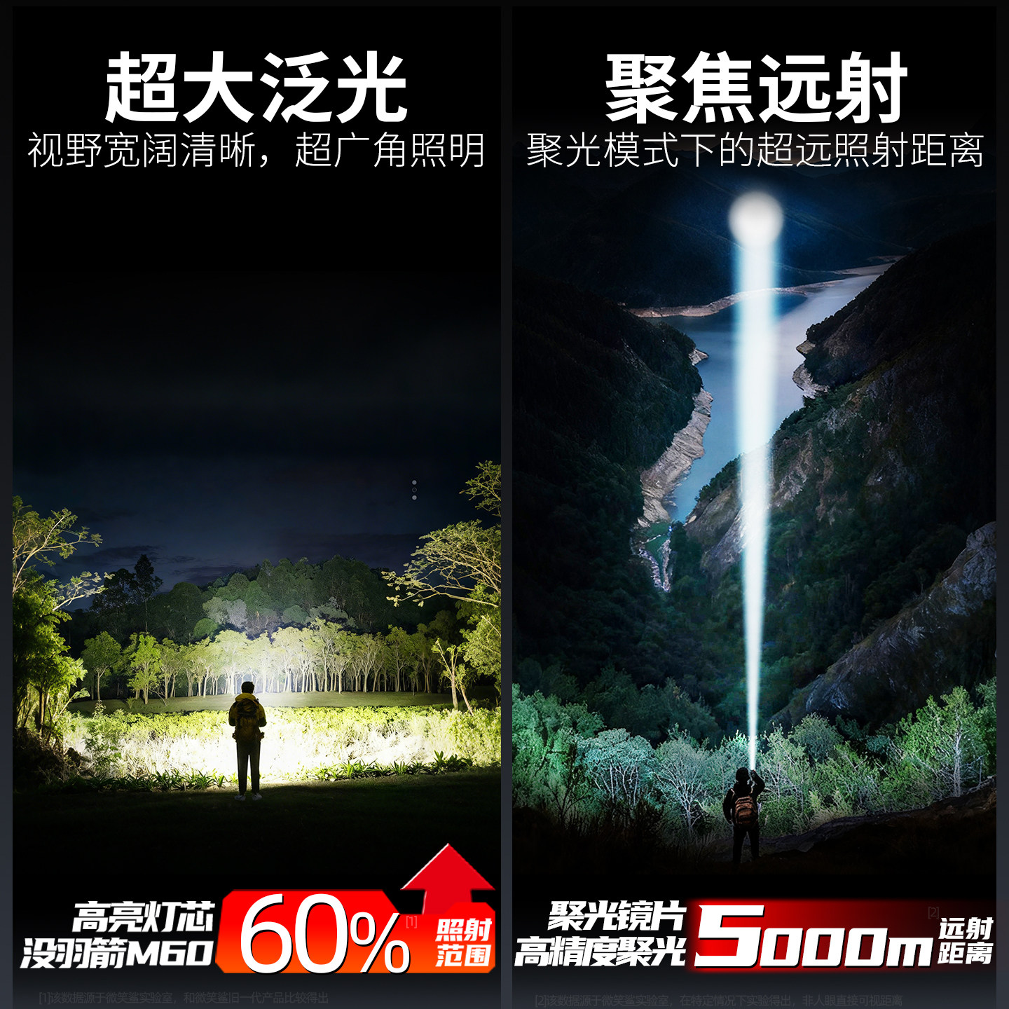 小野人手电筒2025新款强光户外充电超亮远射超长续航小型便携家用