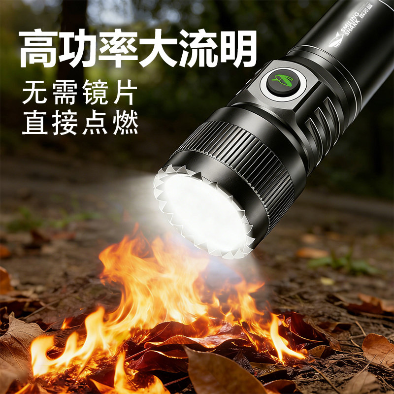 微笑鲨手电筒强光充电户外照明灯远射超亮大功率led充电式耐用