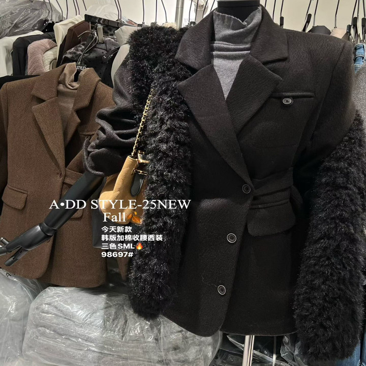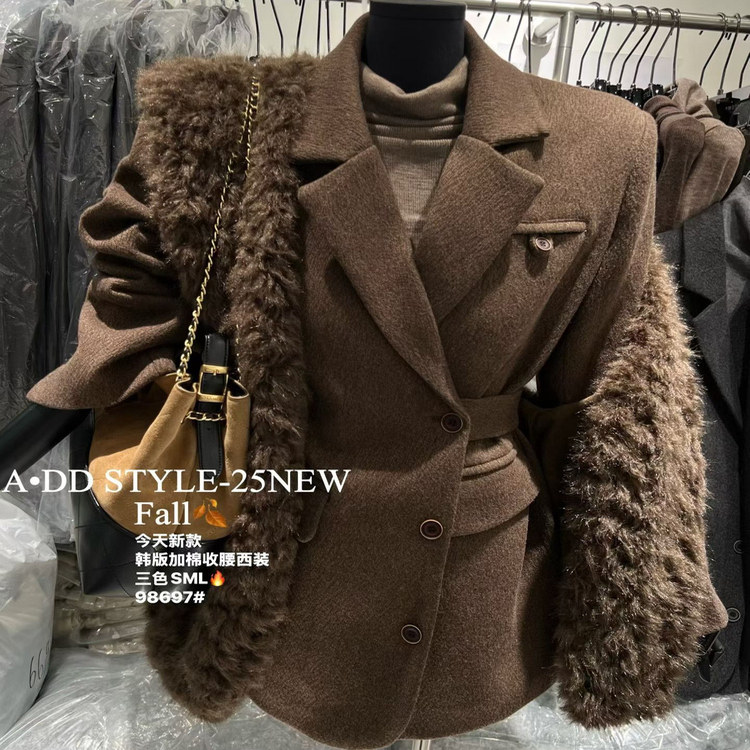 ADD加棉西装2025秋冬新款气质显瘦收腰设计感翻领长袖西服外套女