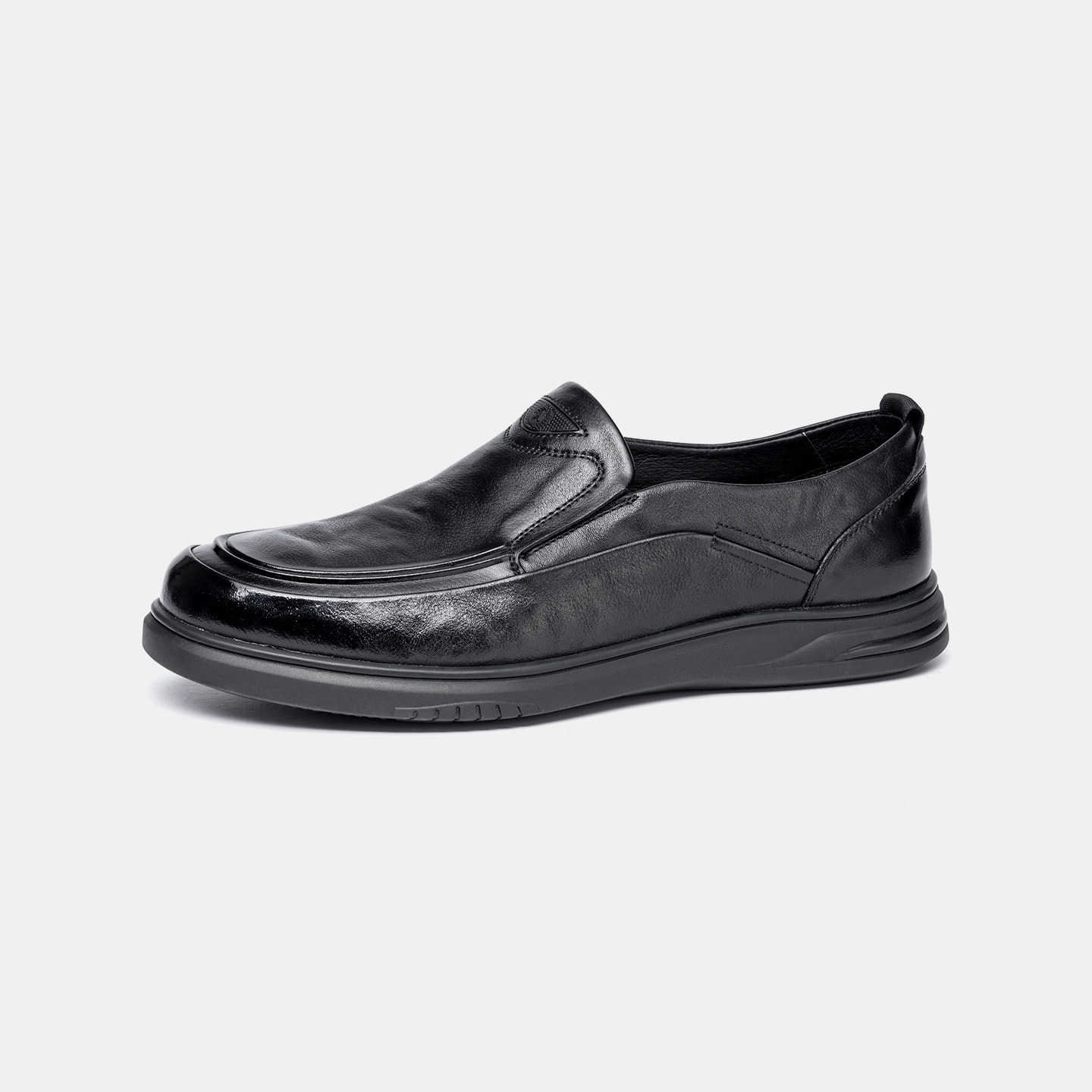 MRA方头乐福鞋男款厚底增高英伦雅痞商务通勤一脚蹬黑色休闲皮鞋