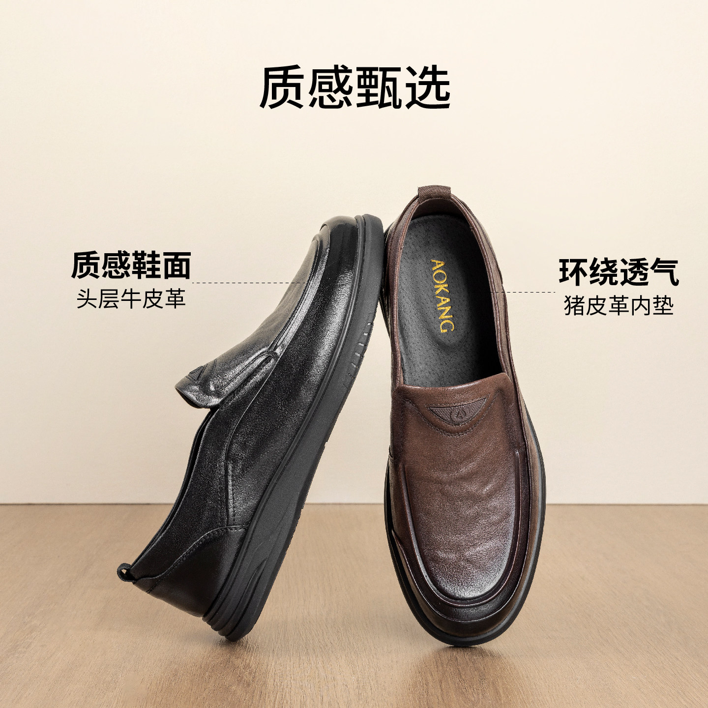奥康春秋季商务休闲皮鞋男真皮软底乐福鞋舒适一脚蹬套脚爸爸鞋