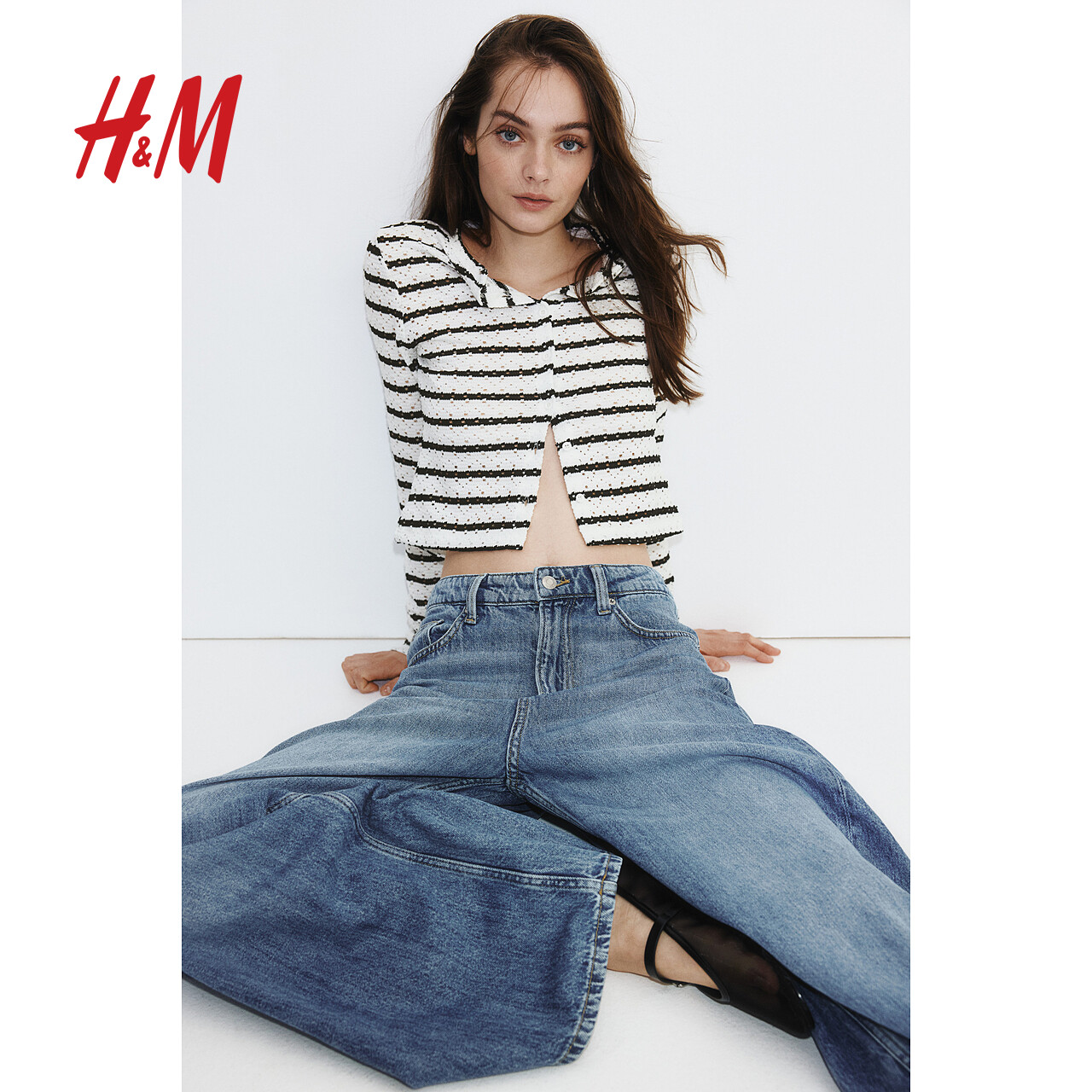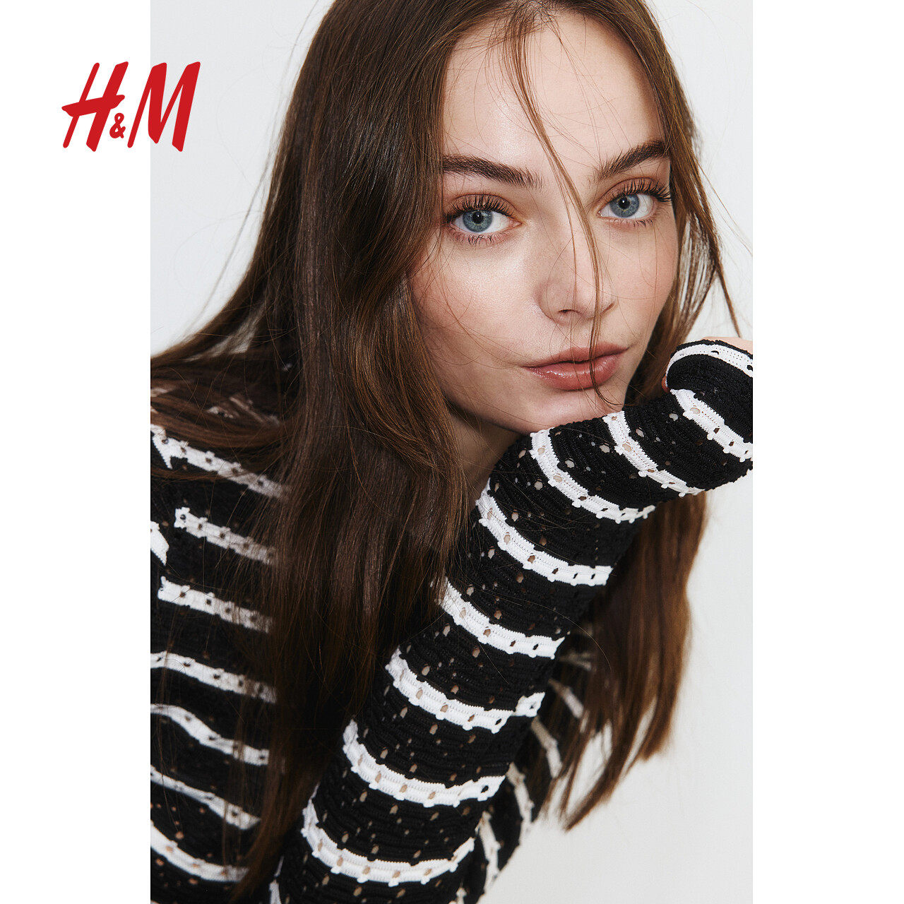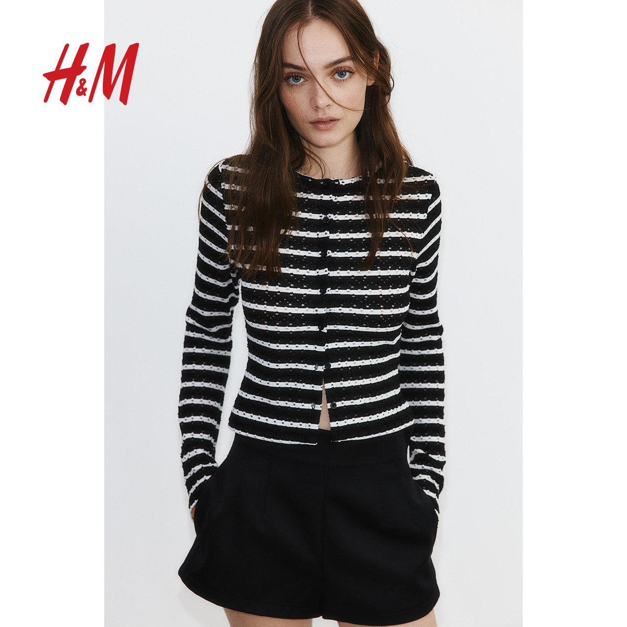 HM女装毛针织衫春季条纹时尚长袖潮流网眼汗布开衫1292883