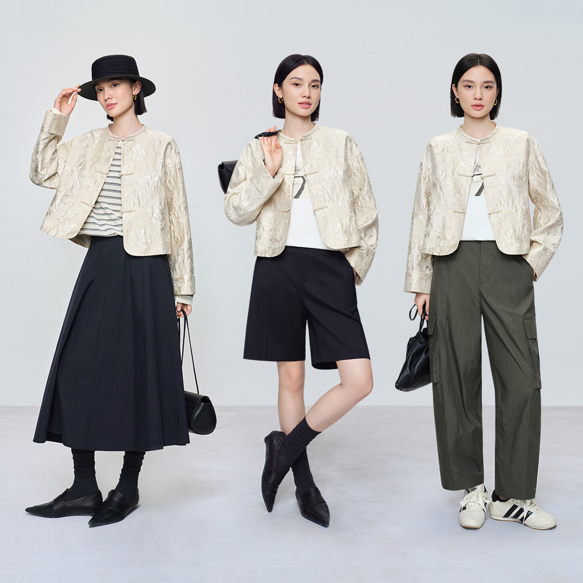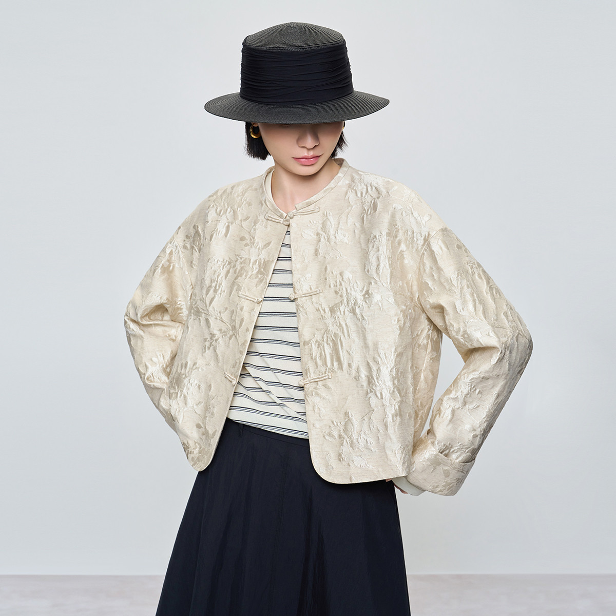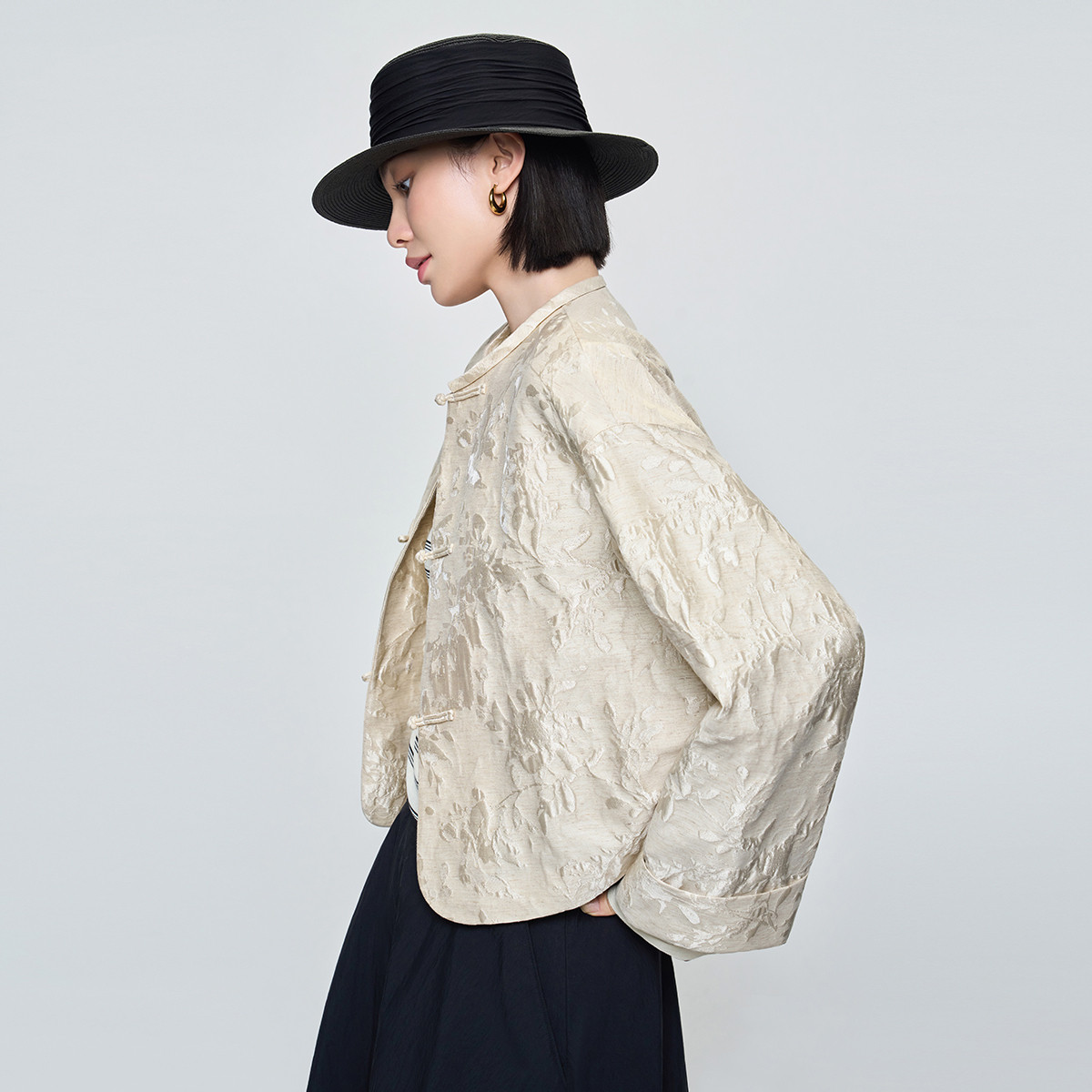 naivee26春新款新中式盘扣圆领棉麻微光泽箱型显瘦短外套国风上衣
