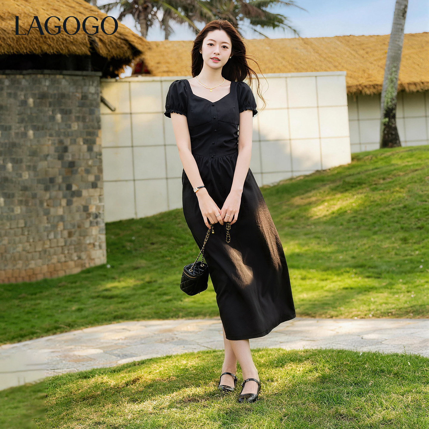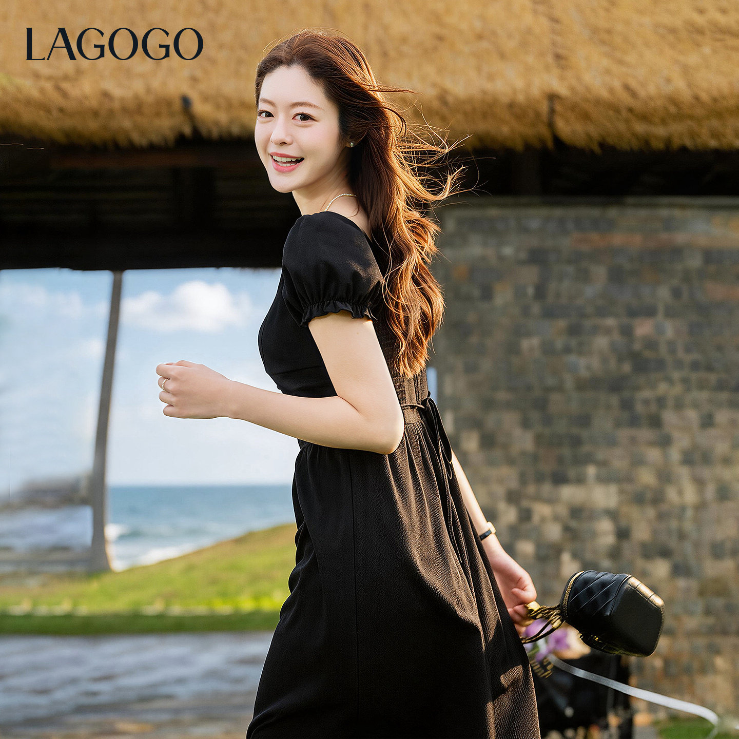 LAGOGO赫本风宴会度假小黑裙女拉谷谷2026年夏新款修身优雅连衣裙