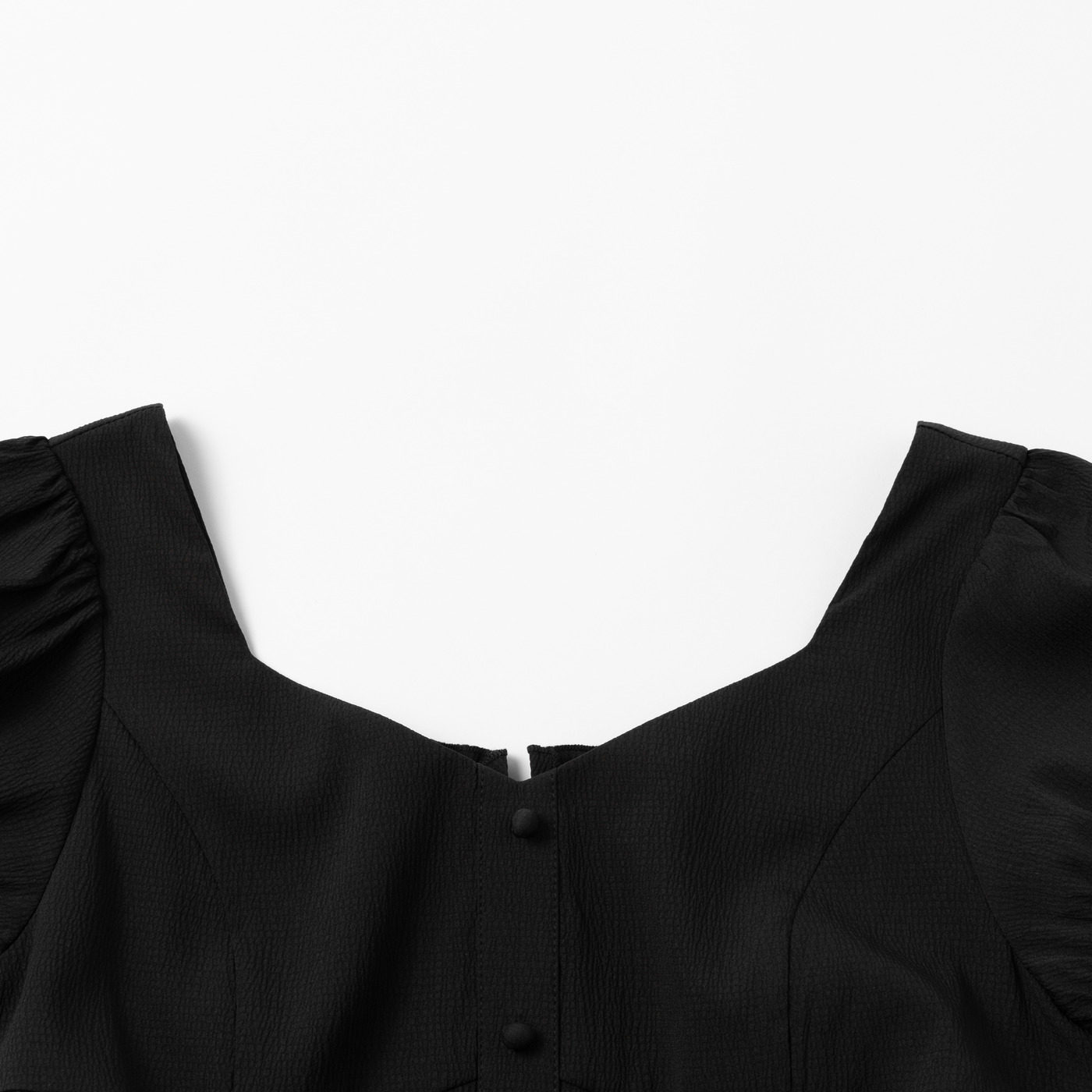 【热销补货】欧时力 褶皱短袖连衣裙女2026春新款收腰显瘦小黑裙