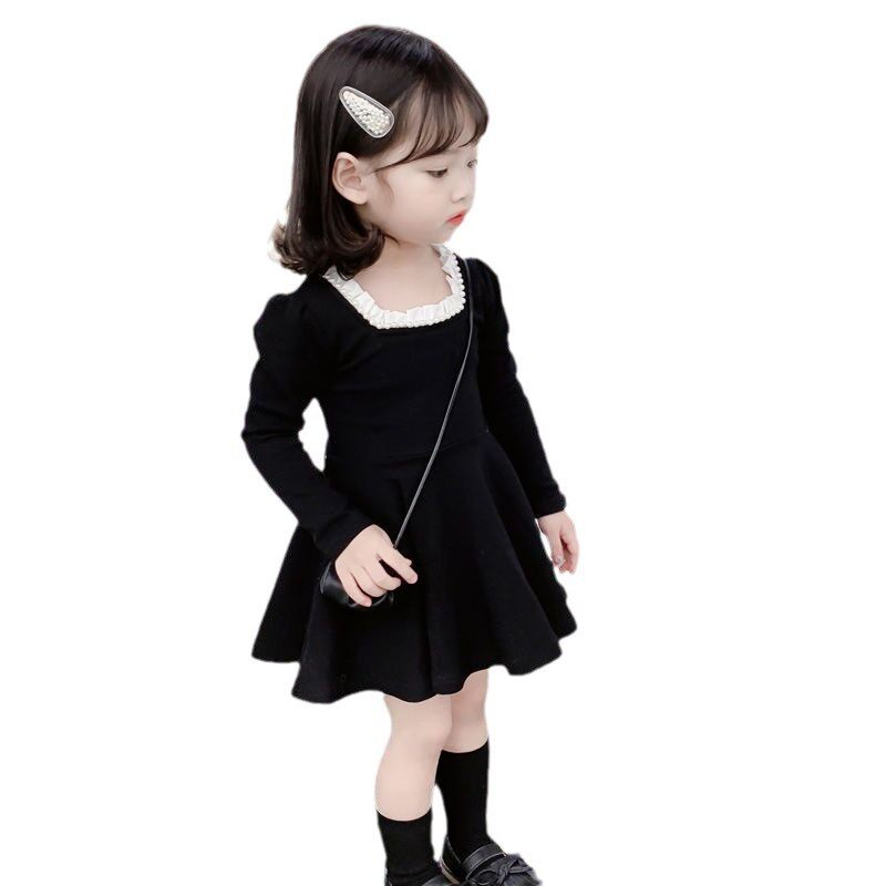 女童连衣裙春秋季2026新款洋气 长袖公主儿童宝宝裙子小黑裙AA364