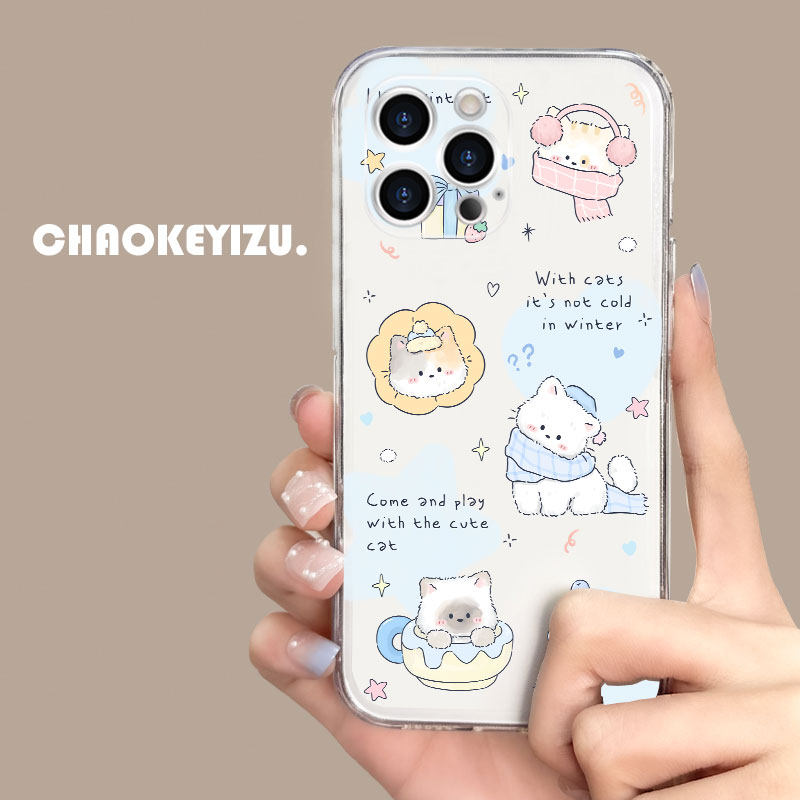 卡通过冬小猫适用苹果16promax手机壳新款iPhone17透明15/14plus软硅胶13pro全包11/12mini防摔xs女8p/7超薄6