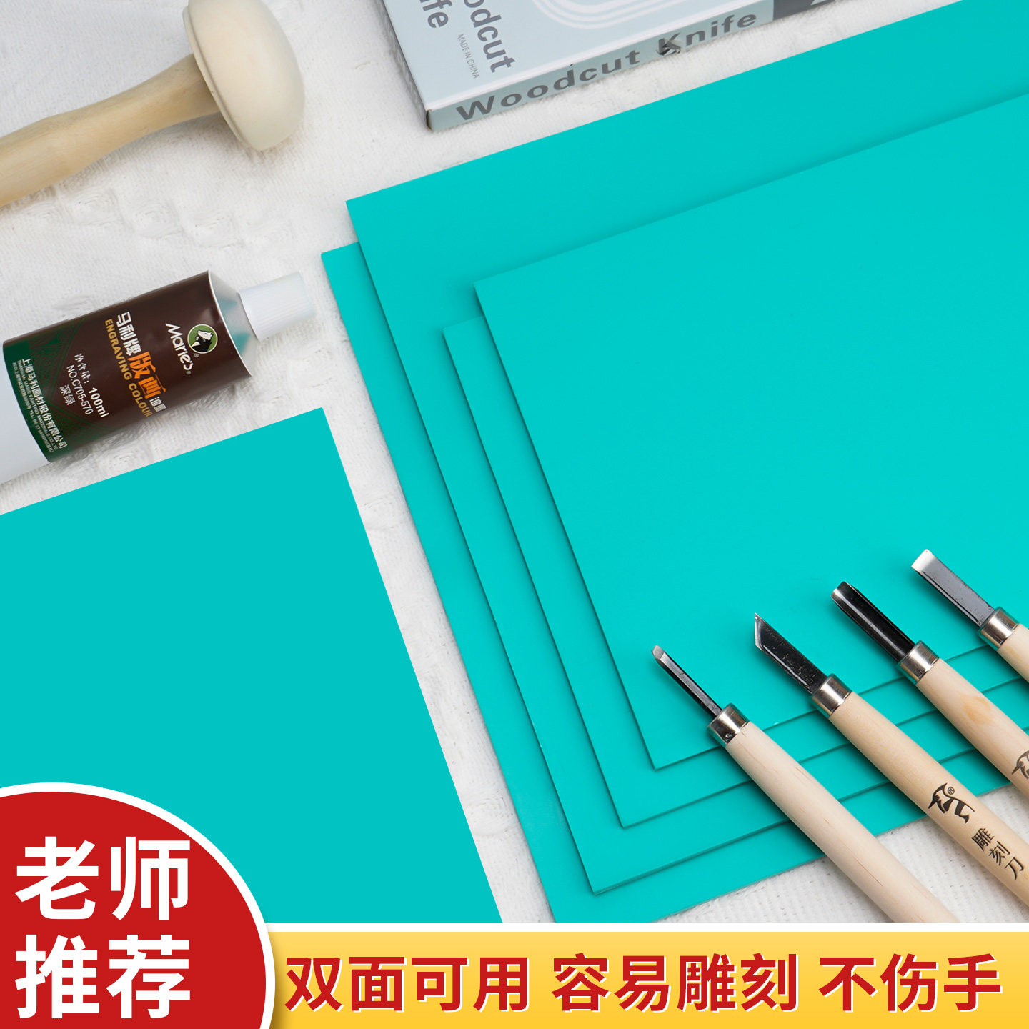 a4版画胶板pvc双面雕刻板初中生美术板画工具全套材料初学者油墨刻刀木刻板画套装绿色拓印软橡胶手工diy材料