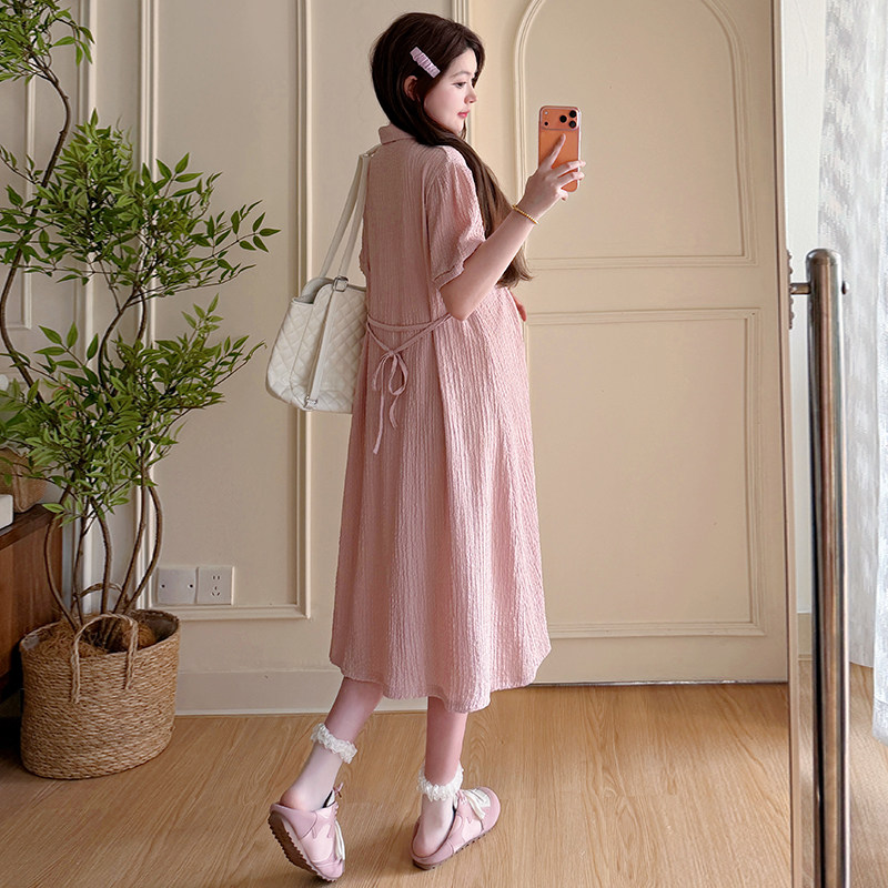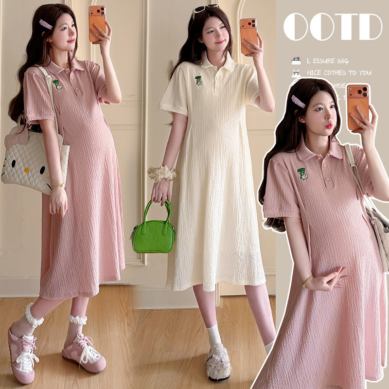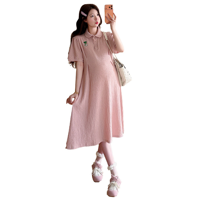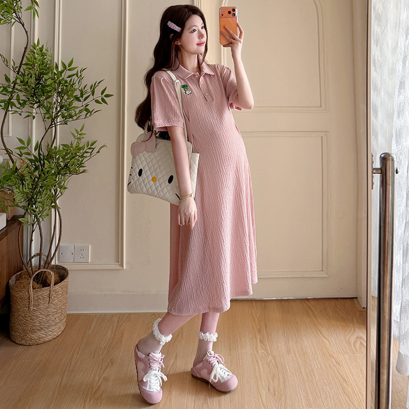 婧麒孕妇连衣裙2026夏季新款时尚减龄娃娃领长裙宽松遮孕肚孕妇装