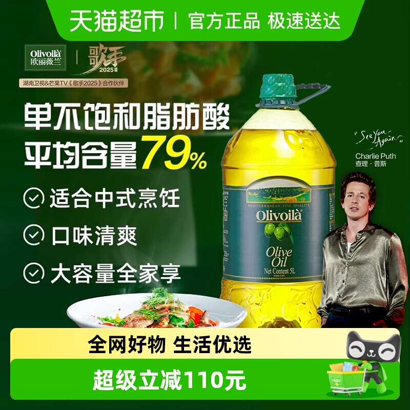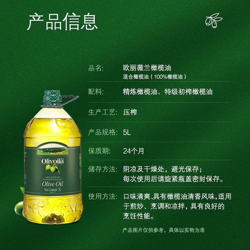 欧丽薇兰橄榄油5L/桶纯正压榨西班牙原油进口食用油家用家庭