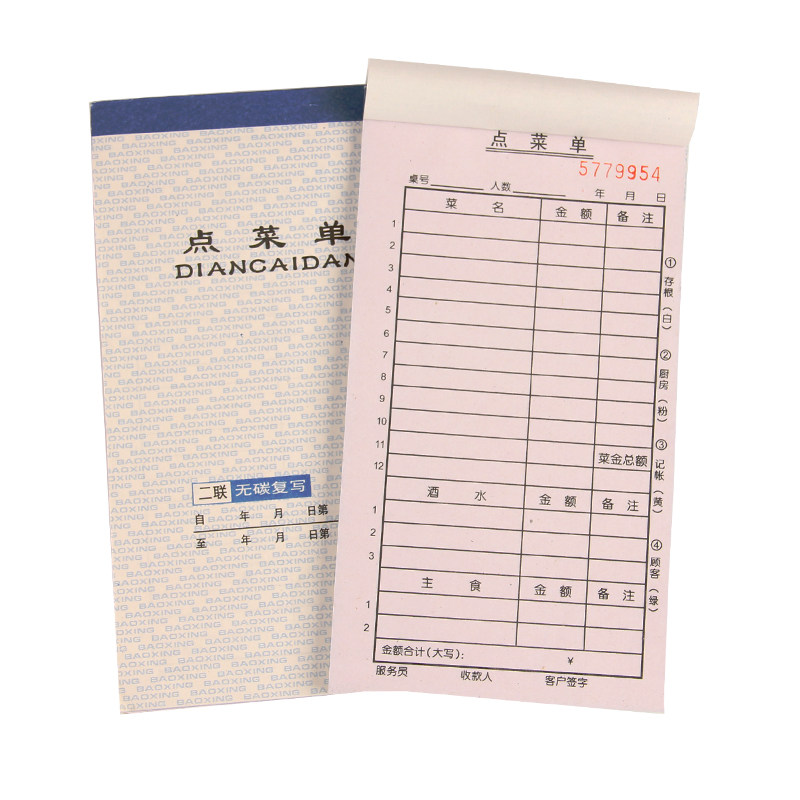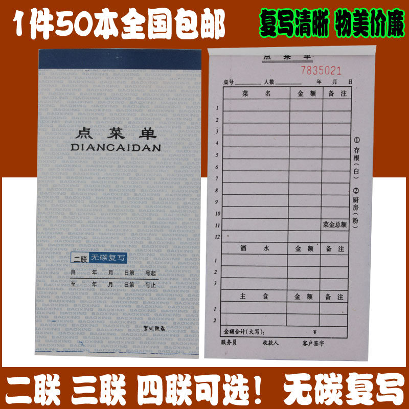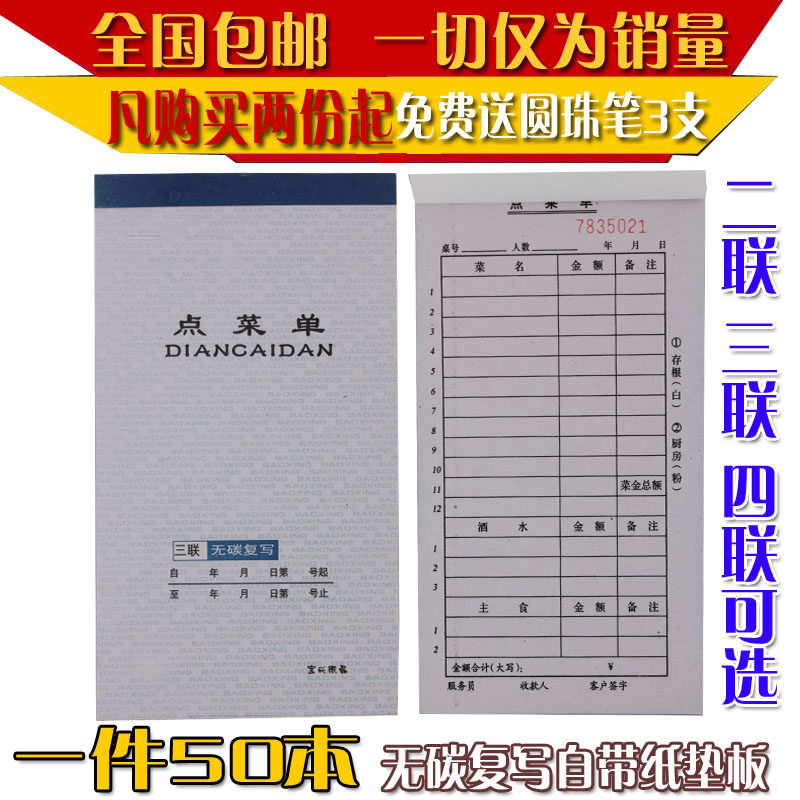 1件50本包邮宝兴无碳复写三联二联四联点菜单餐厅饭店用餐饮单据