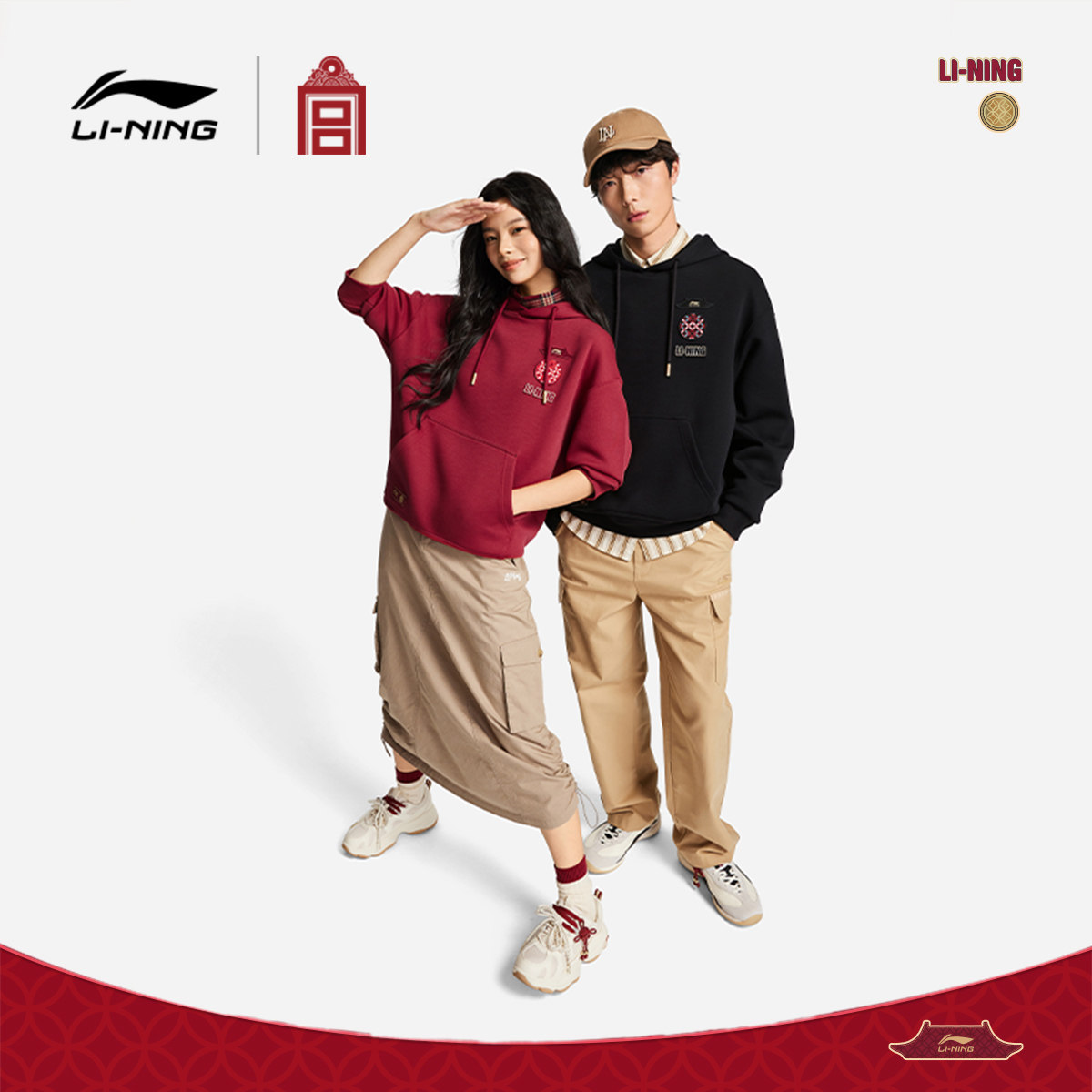 李宁中国文化系列故宫联名卫衣女春季新年红色马年情侣装运动服男