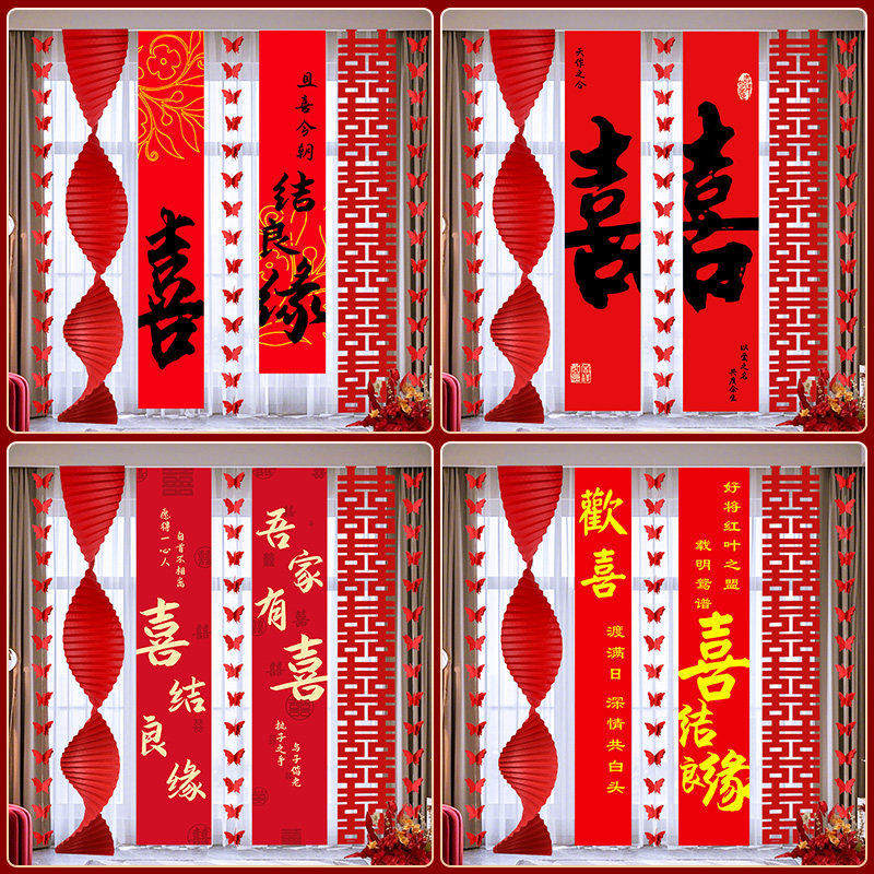 结婚窗帘装饰拉花挂饰婚礼婚房新房布置男方女方卧室客厅长条喜字