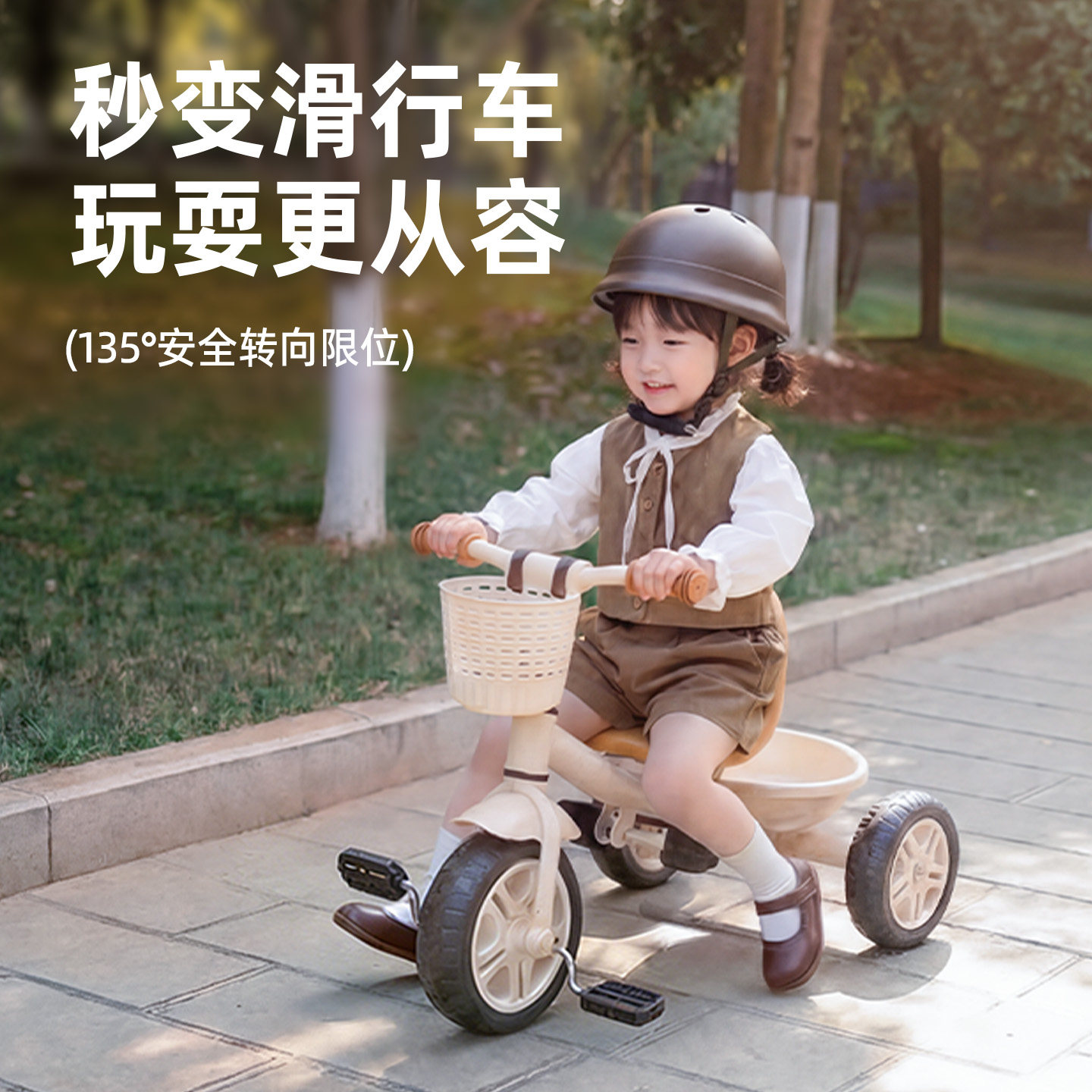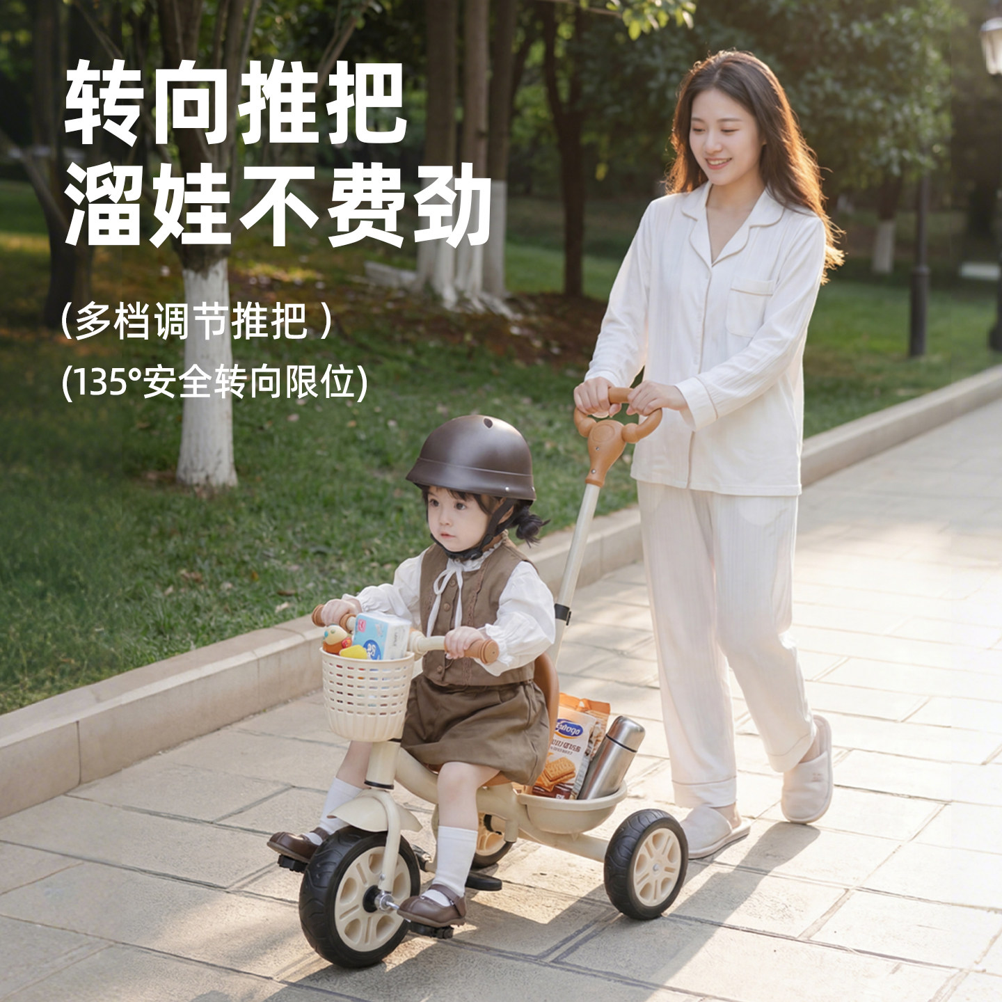 迈多米儿童三轮车脚踏车宝宝多功能平衡轻便推车小孩外出遛娃神器
