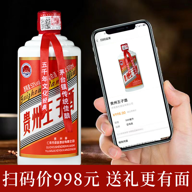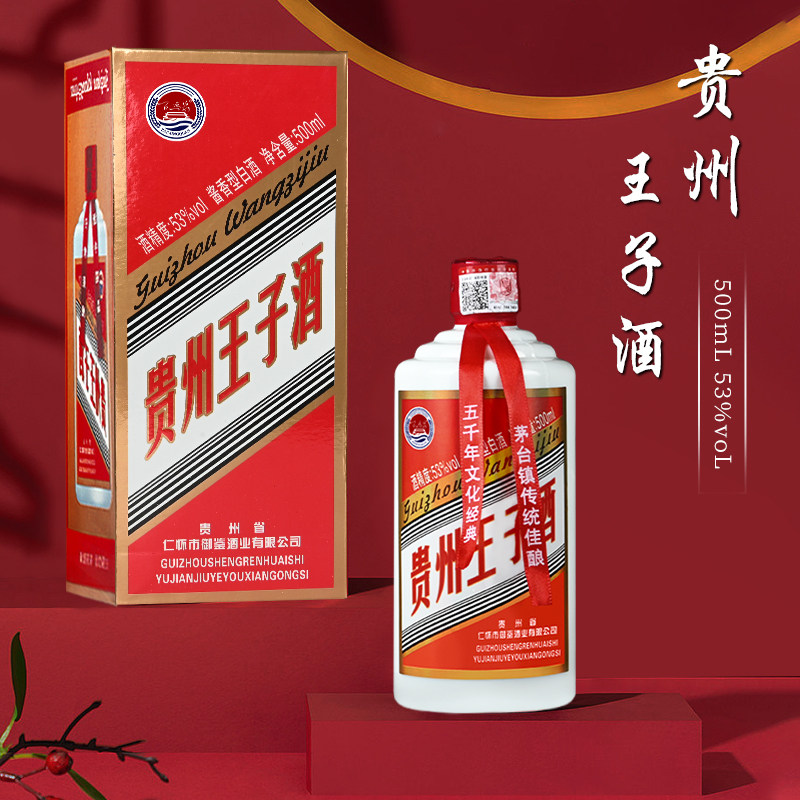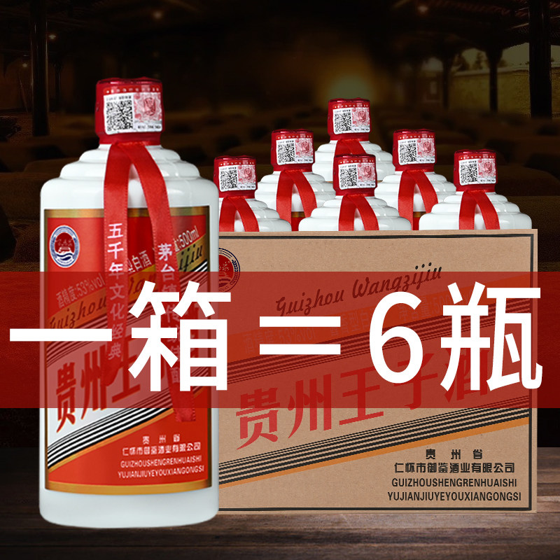 贵州王子酒53度酱香型白酒500ml*6瓶整箱礼盒装纯粮食酒婚宴办席