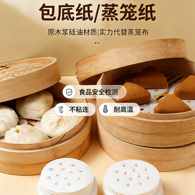 蒸笼纸不粘圆形包子馒头纸垫一次性家用食品级不沾蒸锅油纸蒸笼布