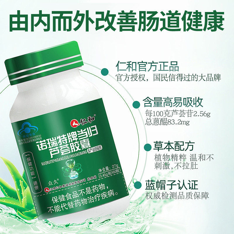 仁和诺瑞特牌当归芦荟胶囊肠便者男女秘排便润通清官方旗舰店清秘