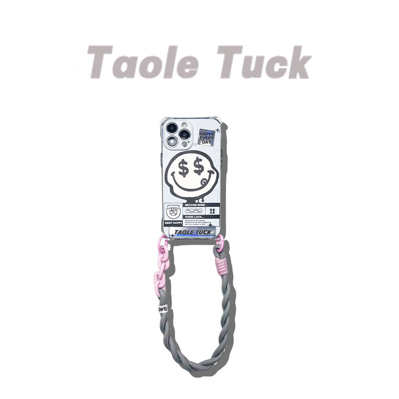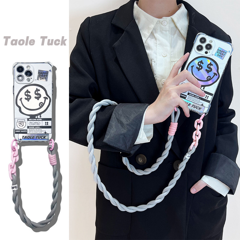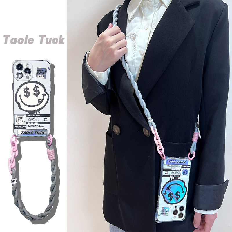 小众镭射款笑脸适用华为苹果15透明防摔软硅胶全包防摔mate60财迷新款mate60pro男女通用16promax挂绳手机壳