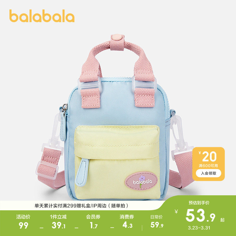 巴拉巴拉女童手拎包休闲包儿童布艺背包斜跨舒适撞色时尚甜美清新